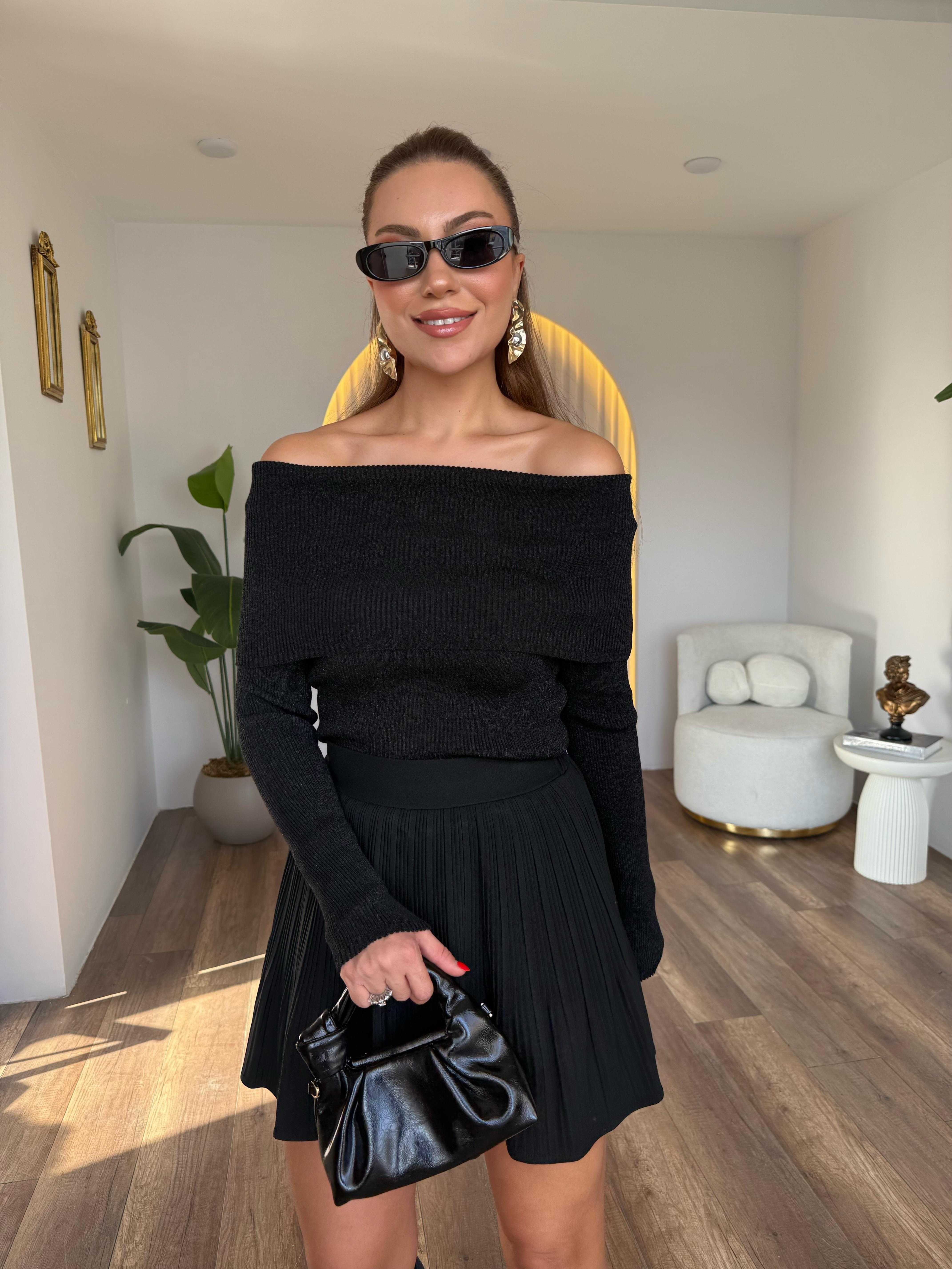 10600 Bardot Yaka Fitilli Simli Triko Kazak