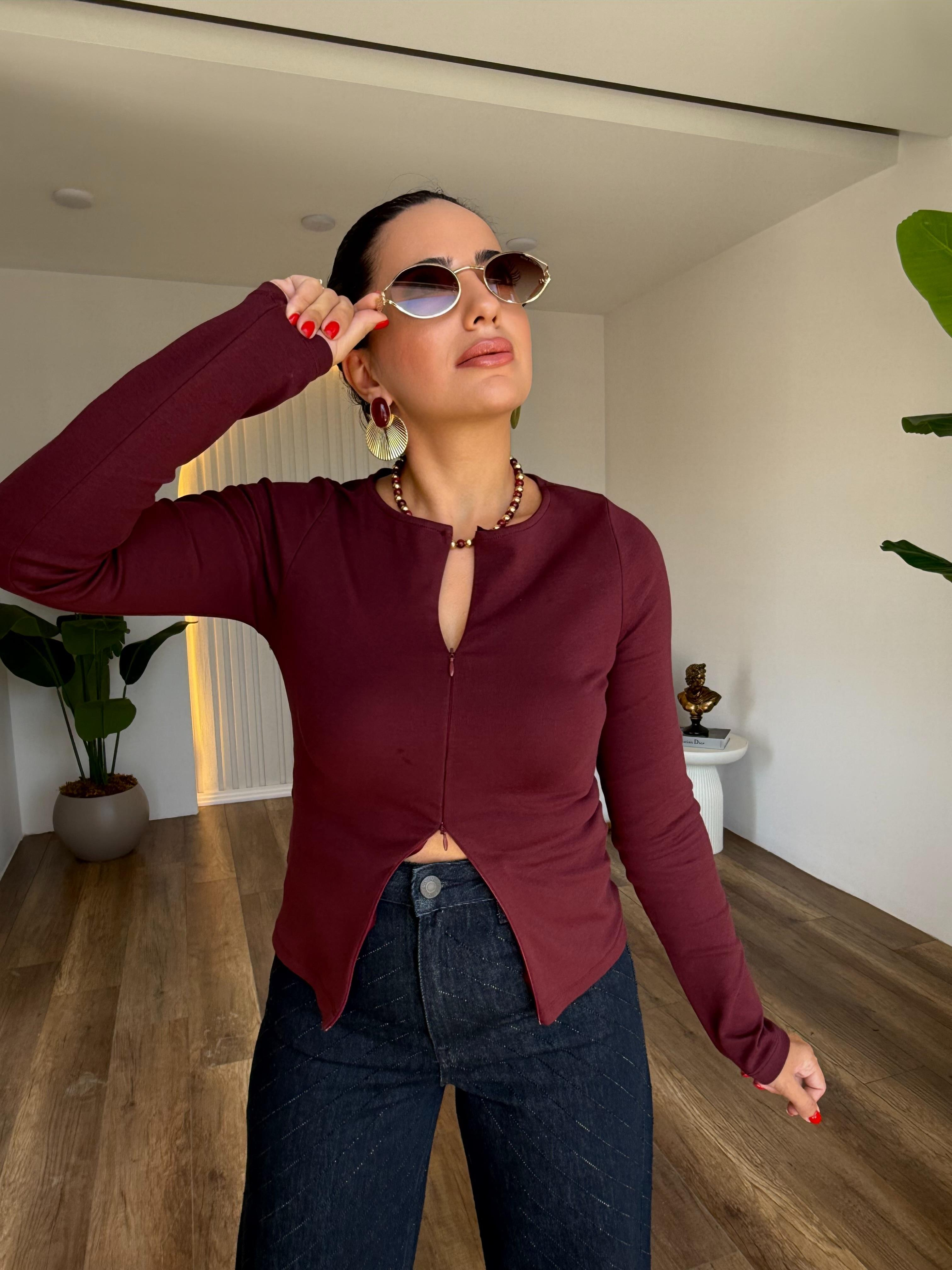 10602 Fermuar Detaylı Uzun Kollu Bluz