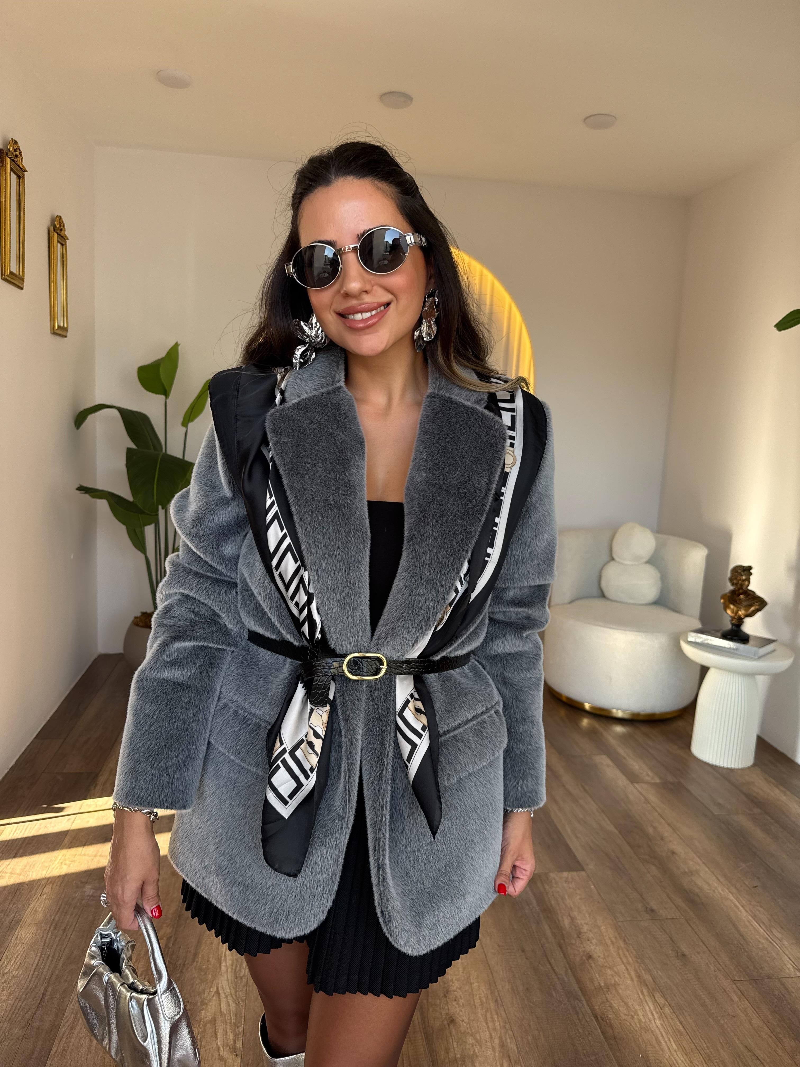 10609 Peluşlu Kemerli Blazer Ceket