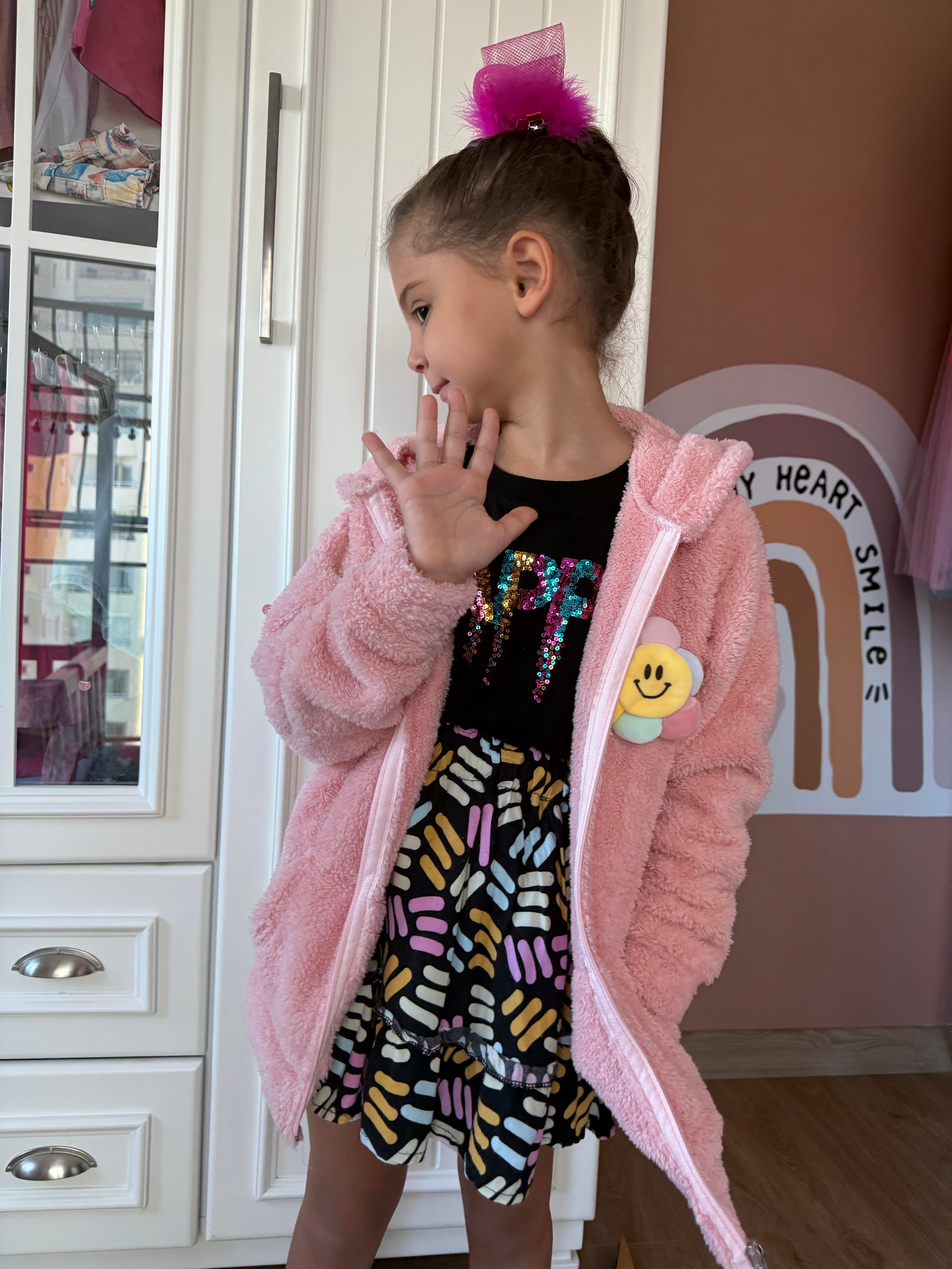 10677 Kids Flower Çiçekli Peluş Hırka 8-9/13-14 Yaş