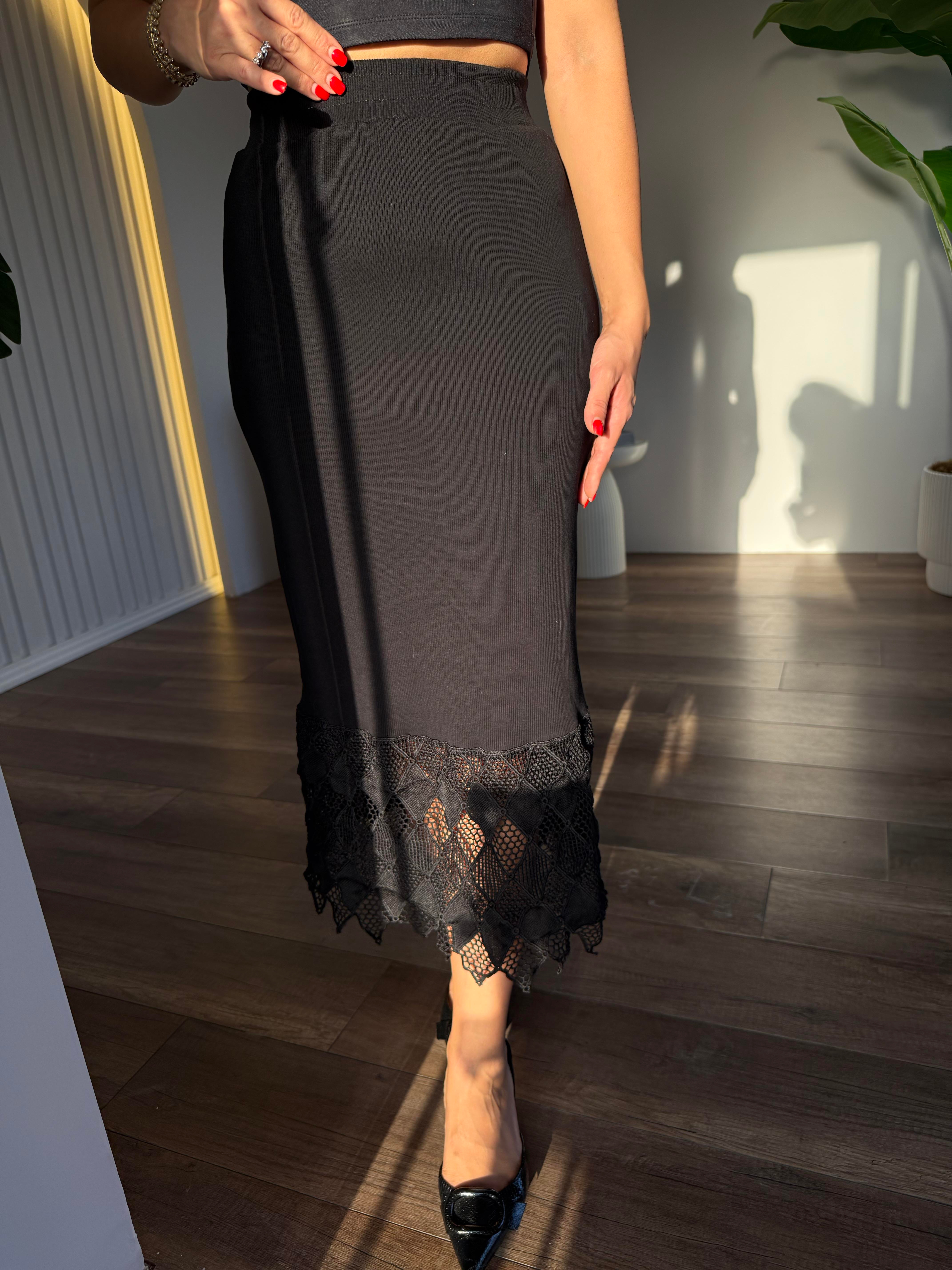 10716 Fitilli Dantel Detaylı Yırtmaçlı Etek