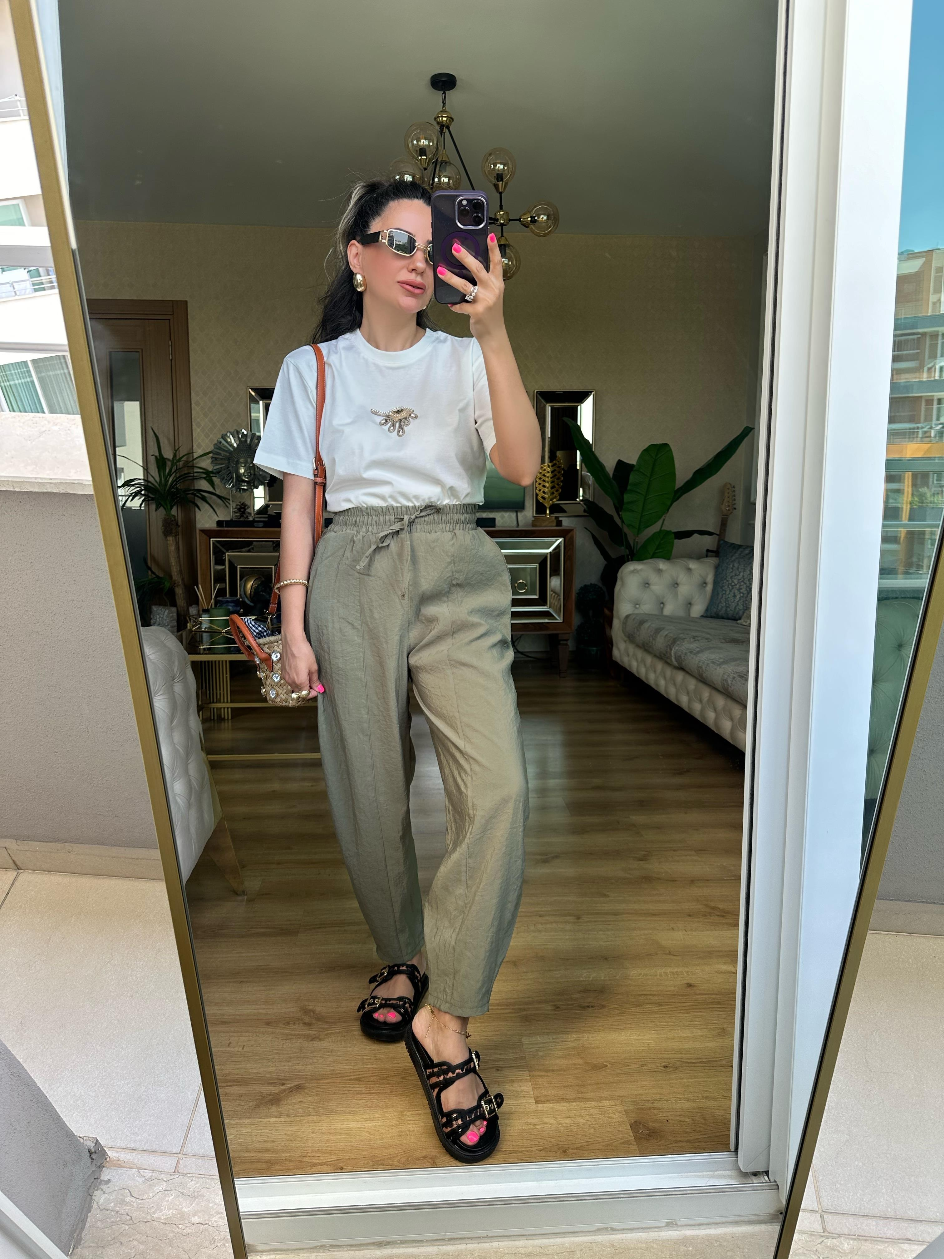8293 Haki Yeşil Beli Lastikli Pantolon