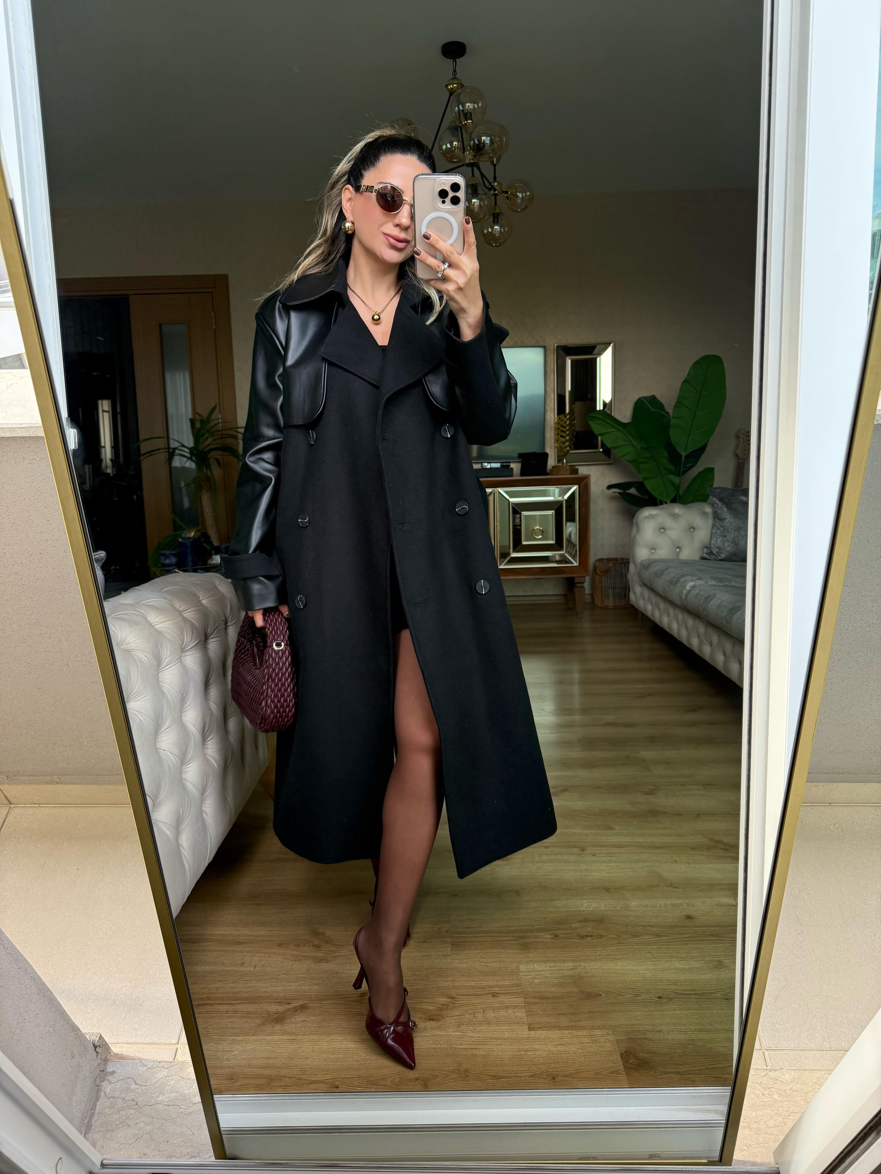 8923 Deri Detaylı Trençkot