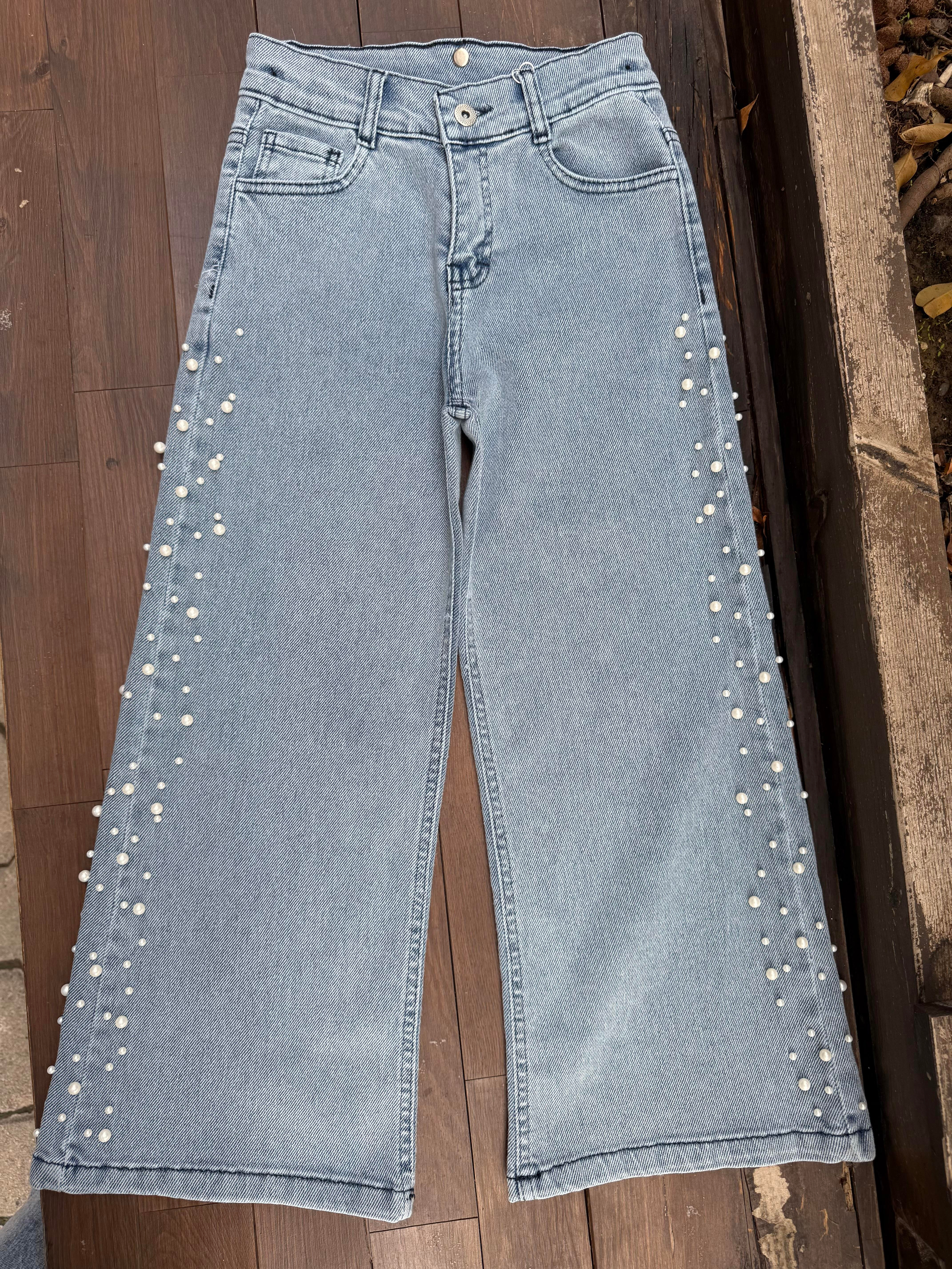 8977 Kids İnci Detaylı Pantolon 5-12 Yaş