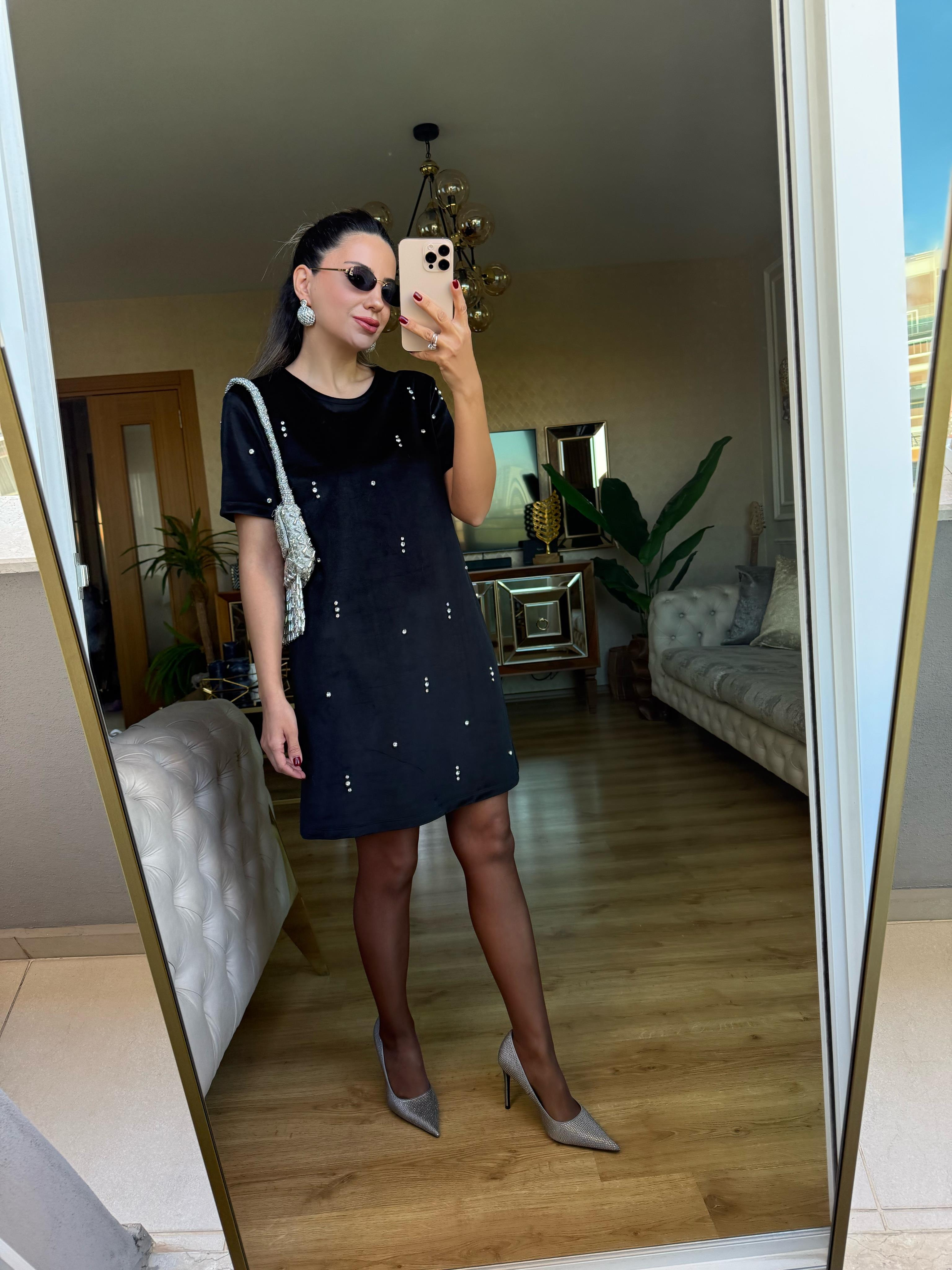9017 Taşlı Kadife Elbise (5Y04056002)