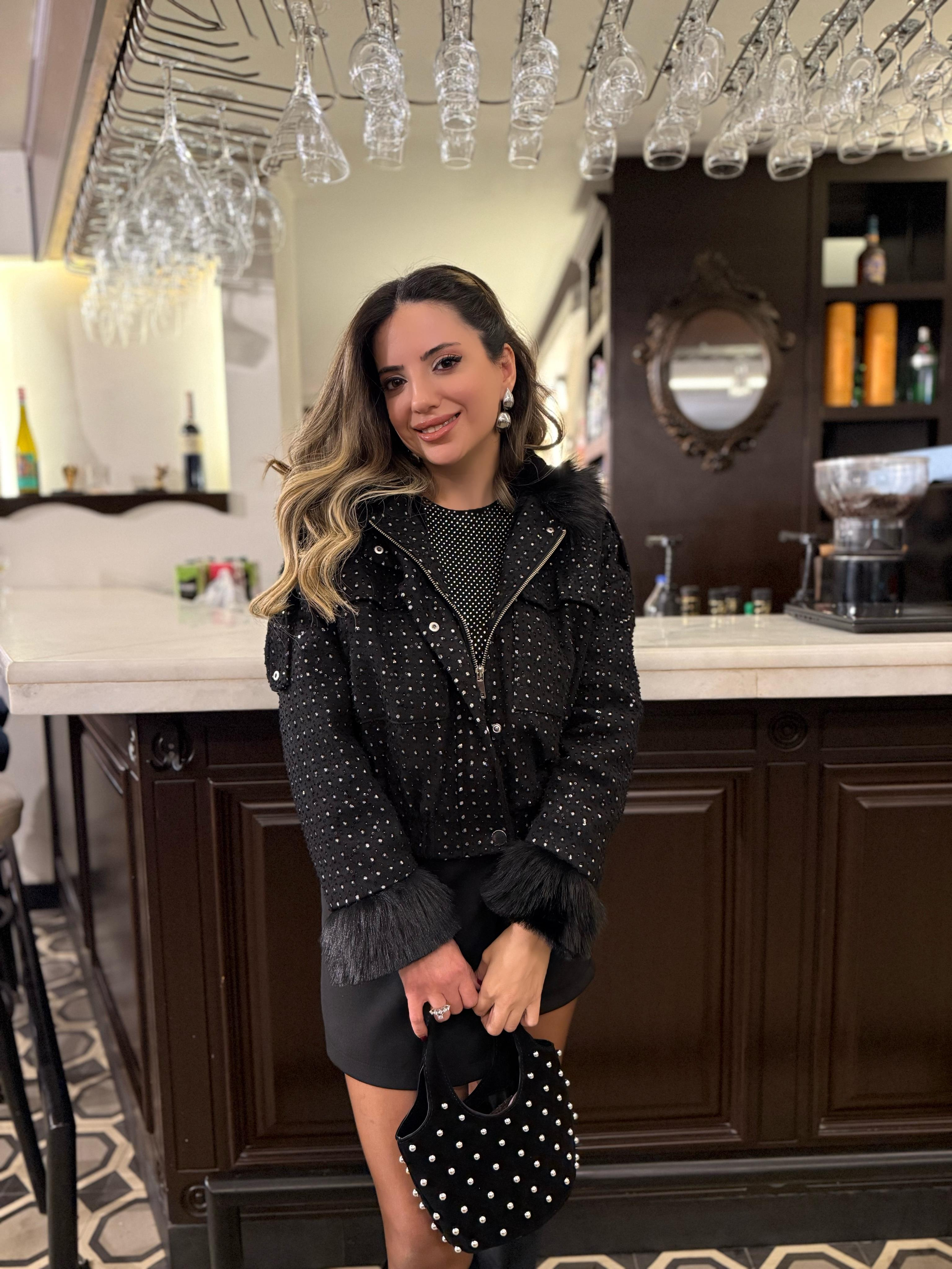 9029 Siyah Payetli Kürklü Mont