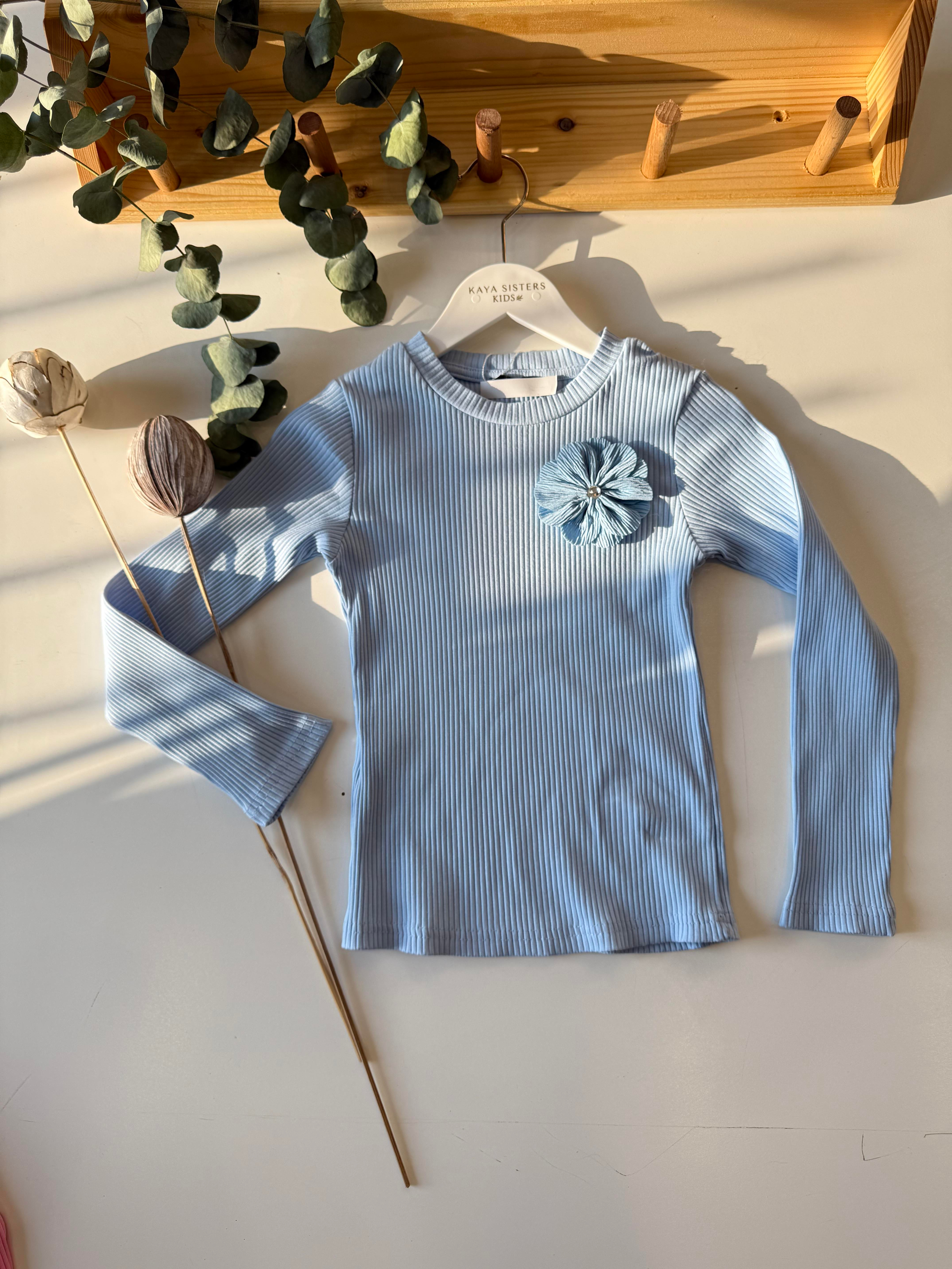 9129 Kids Çiçek Aksesuarlı Fitilli Bluz 5-6/13-14 Yaş