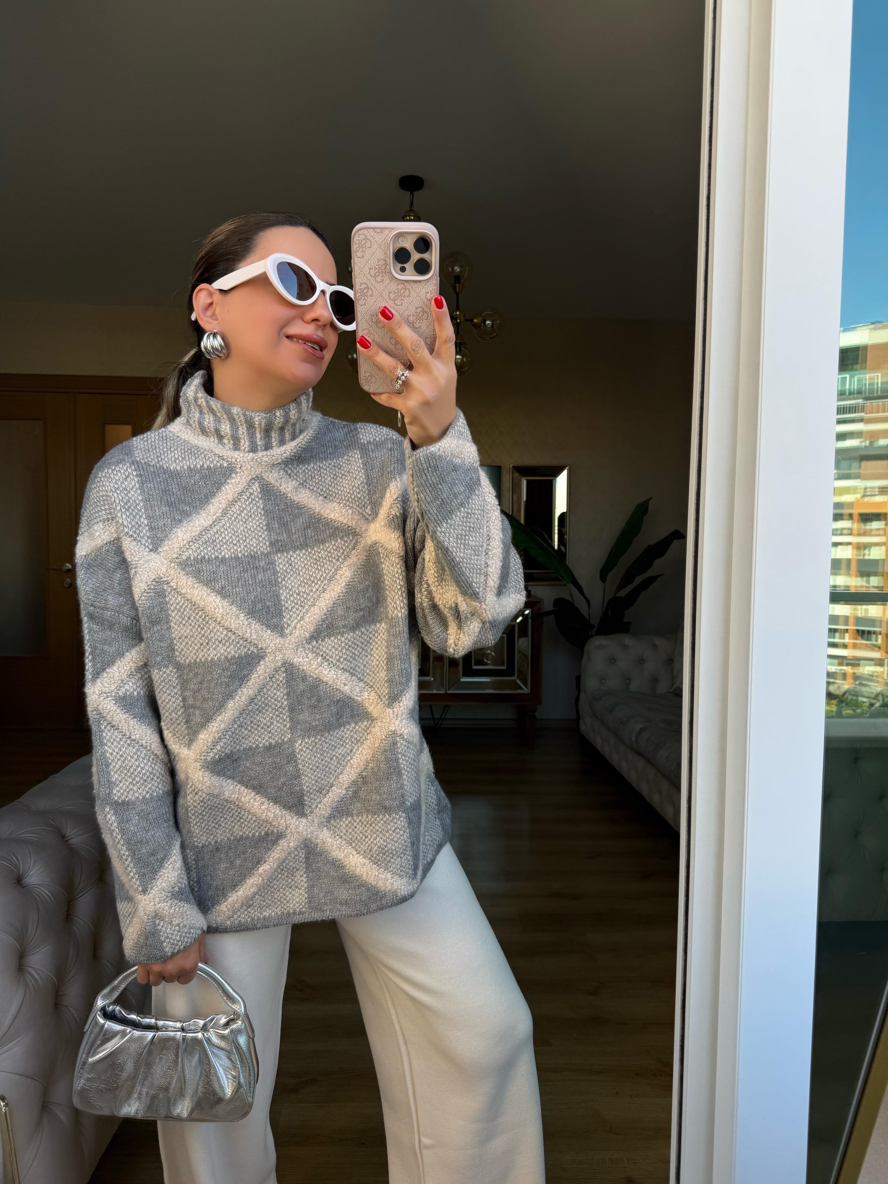 9210 Gri Vanilya Bakla Desenli Kazak