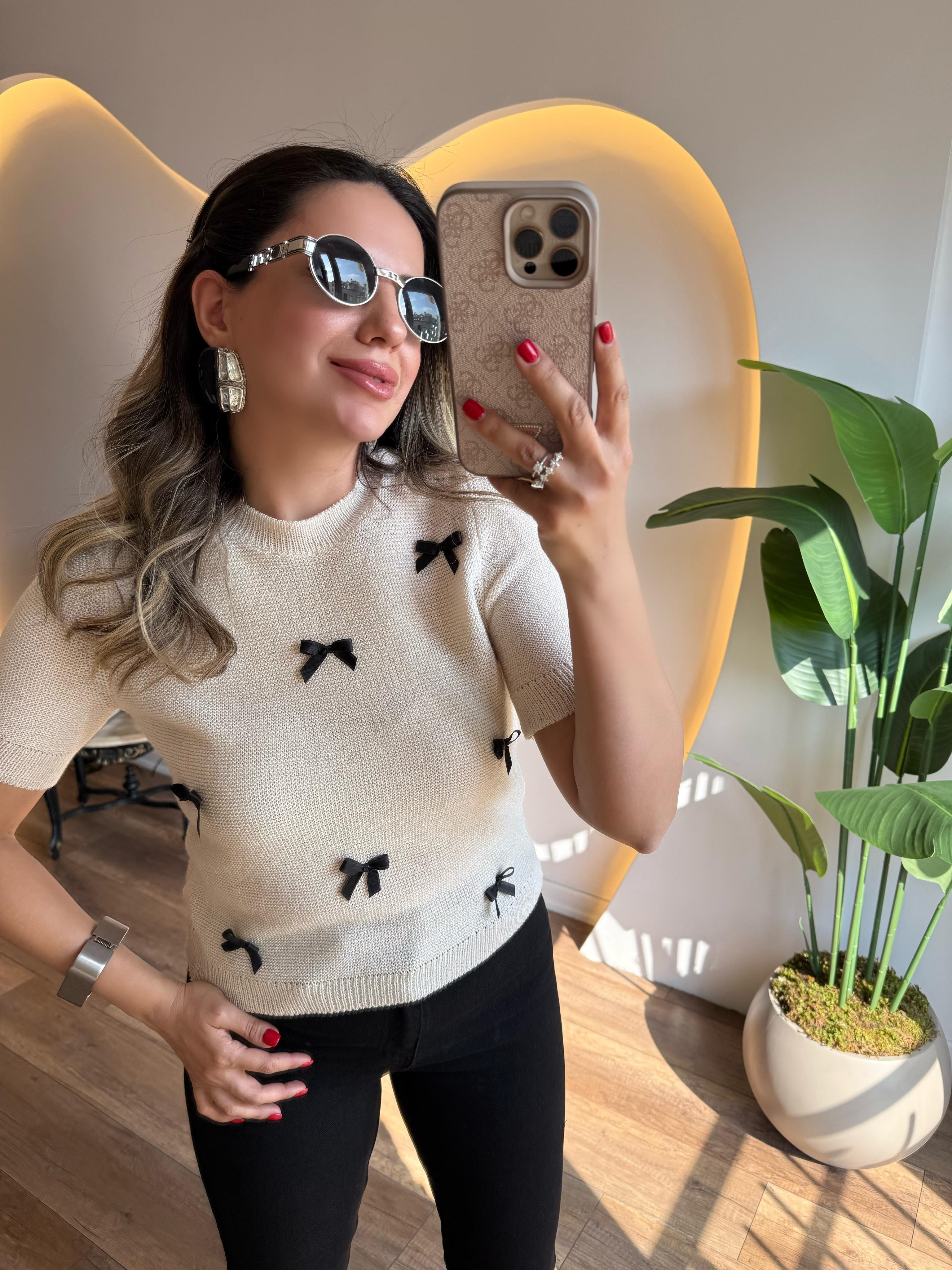 9514 Fiyonk Detaylı Yarım Kol Bluz