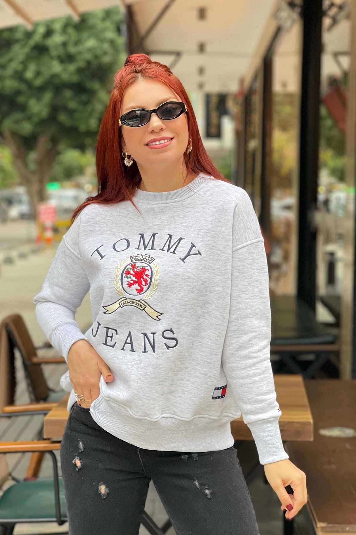 Baskılı Gri Sweatshirt
