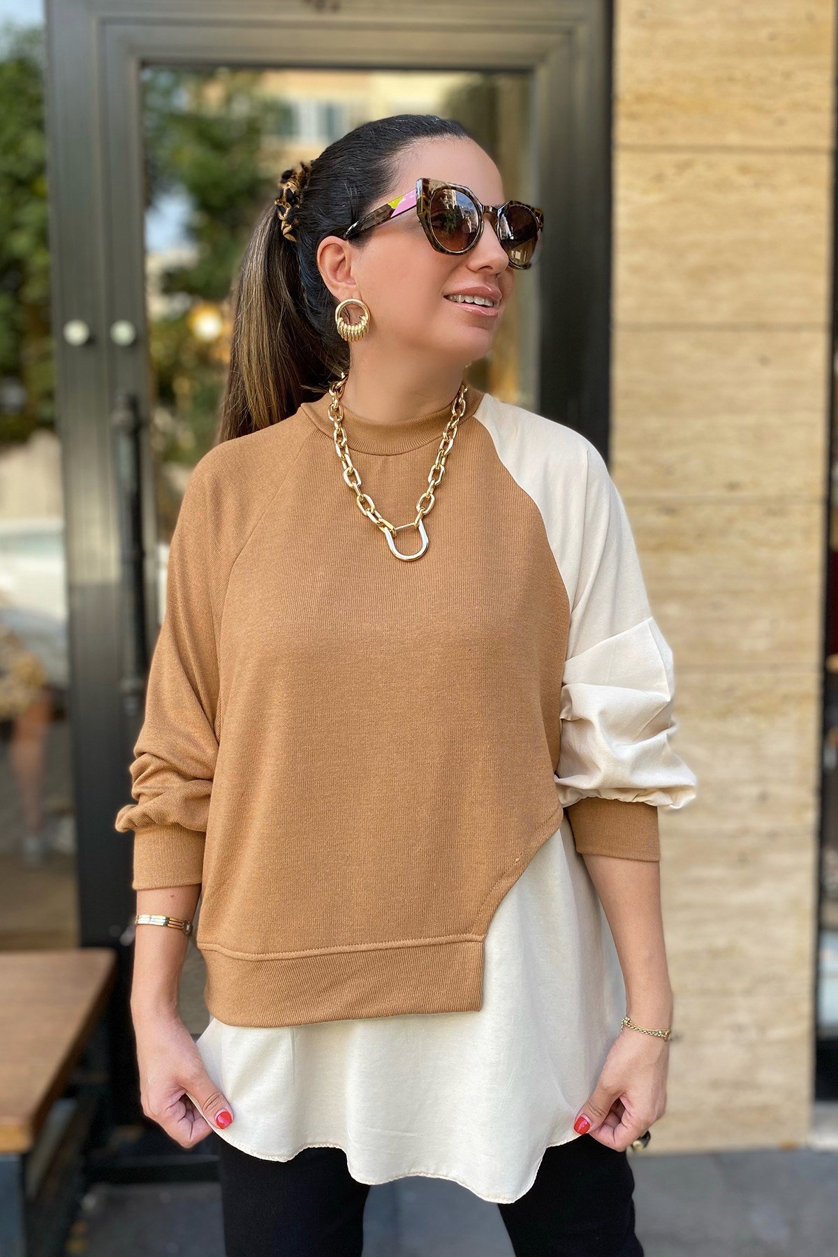 Çift Renk Ekru Sweatshirt