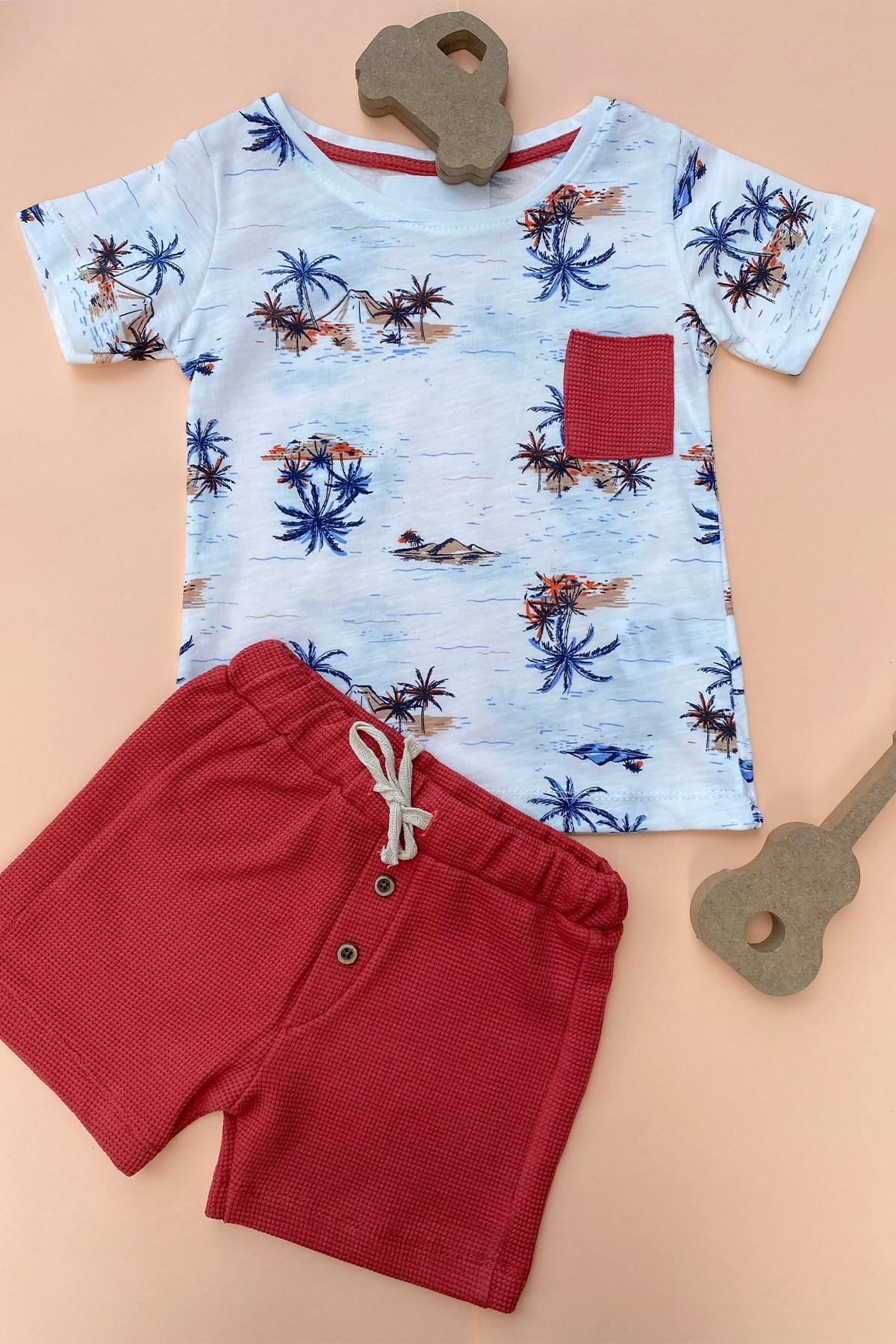 Desenli Kiremit Şortlu Takım