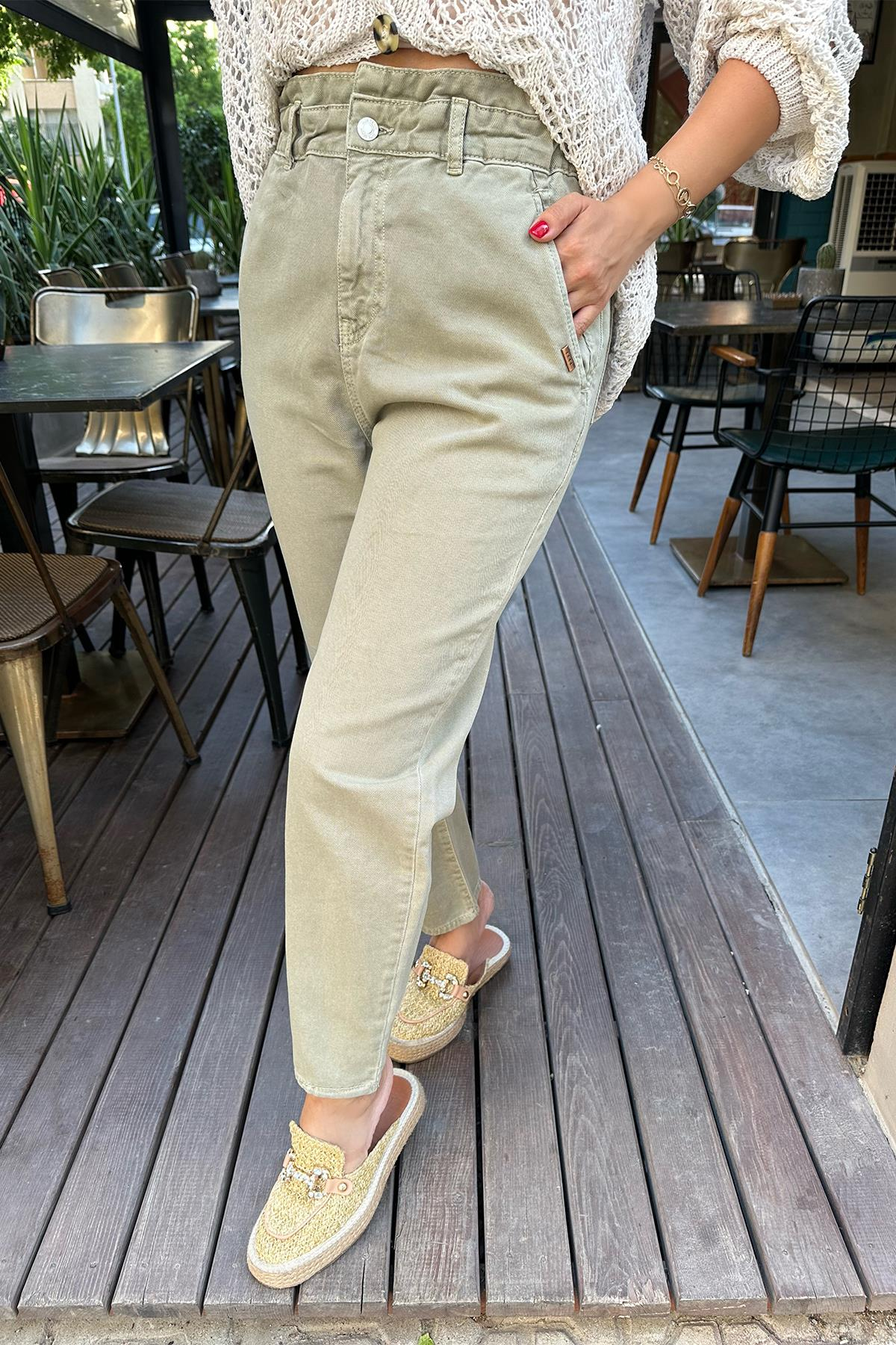 Haki Yeşil Beli Lastikli Orjinal Pantolon