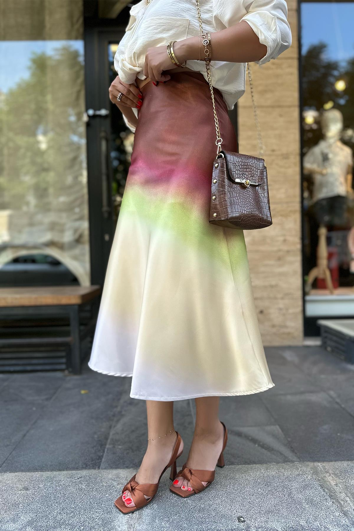 Kahve Desenli Saten Etek