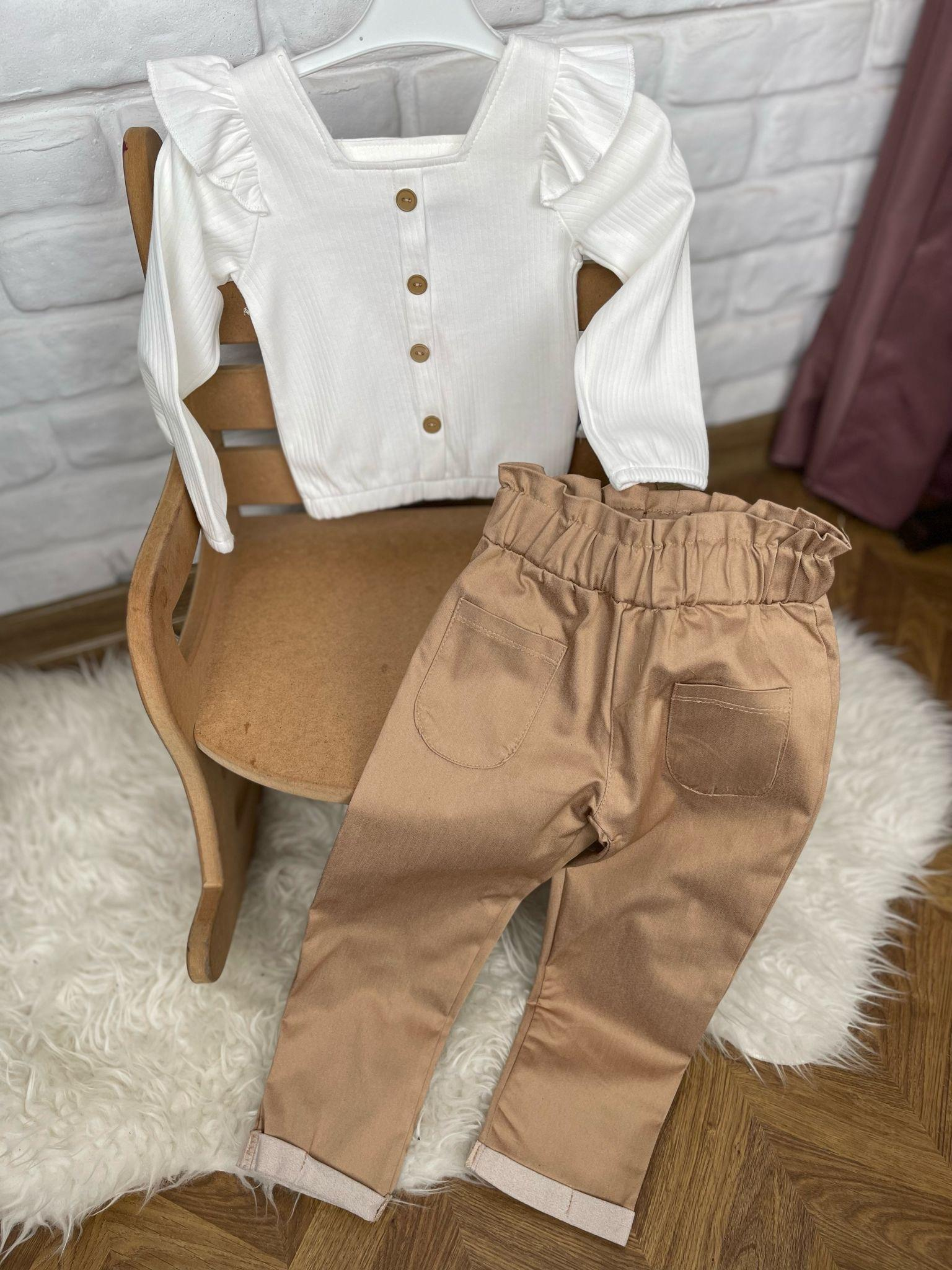 Kids Beyaz Kare Yakalı Pantolon Takım