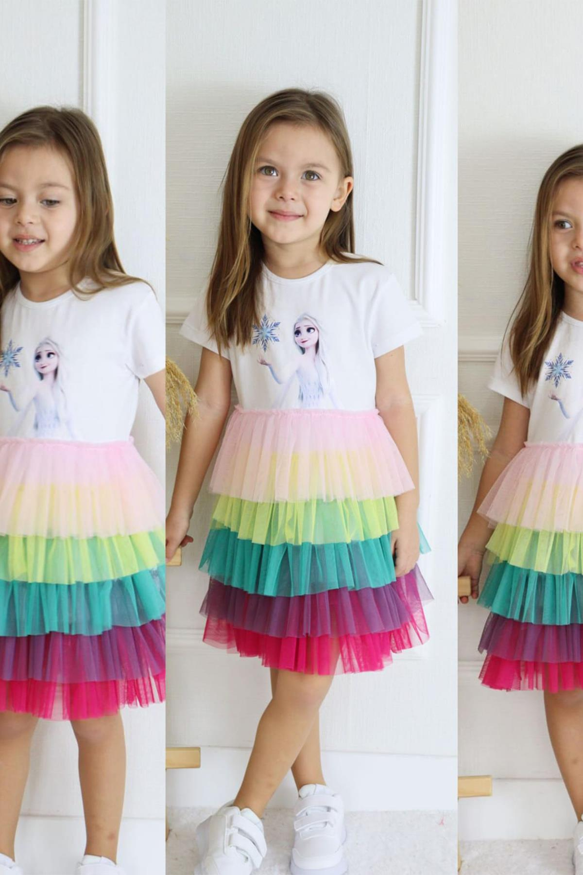 Kids Elsa Renkli Katlı Elbise Kids Unicorn Renkli Katlı Elbise