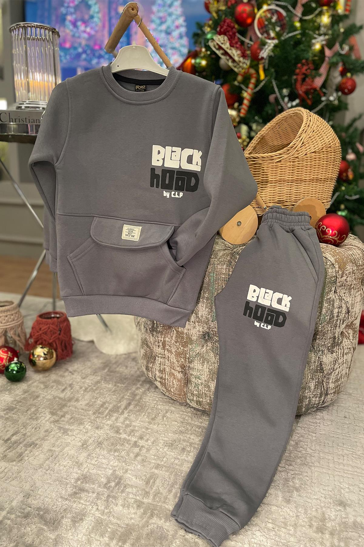 Kids Gri  Baskılı Takım Kids Kahve Baskılı Takım