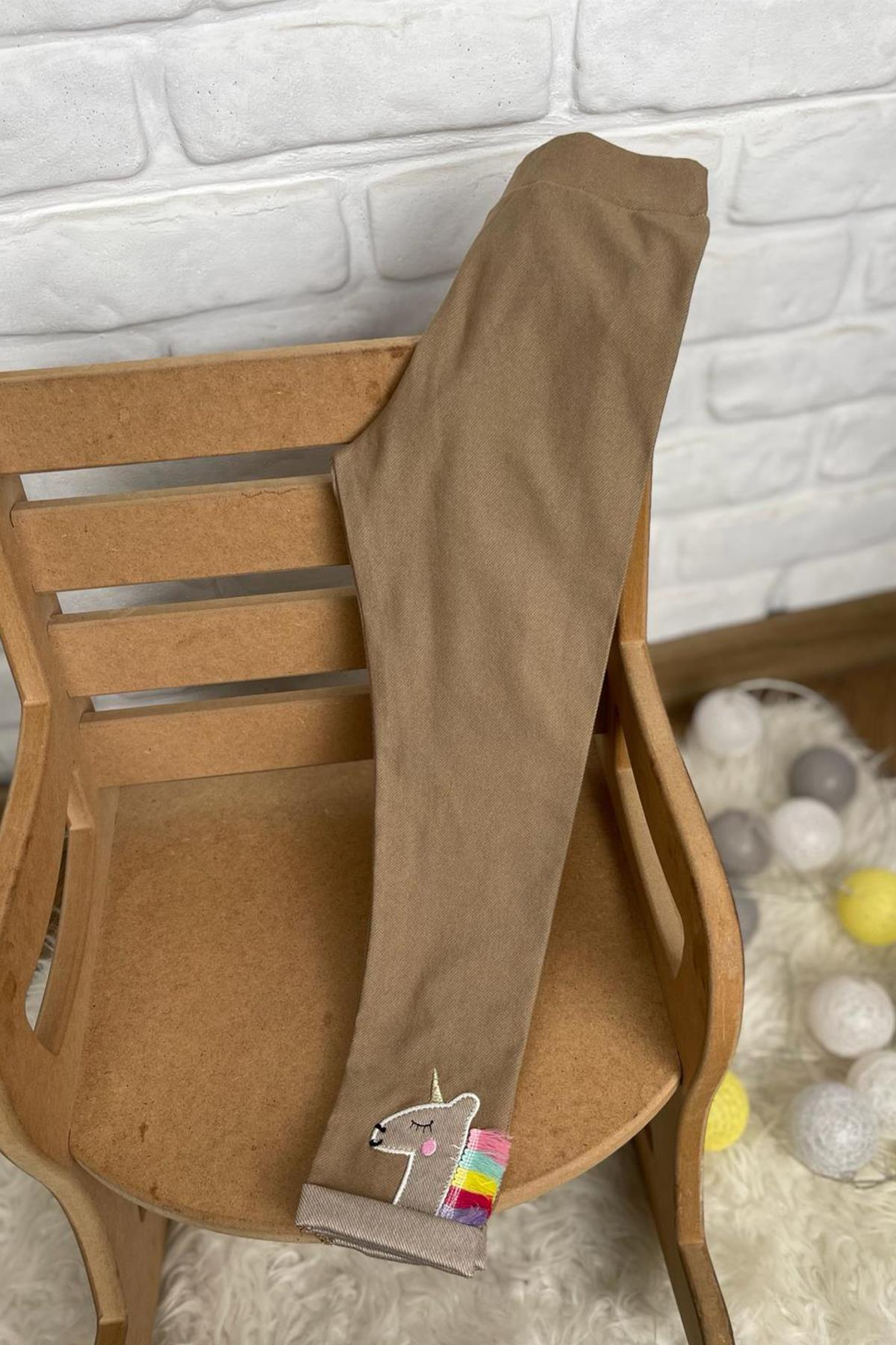 Kids Kahve Renk Paça Unicorn Detaylı Tayt (7330)