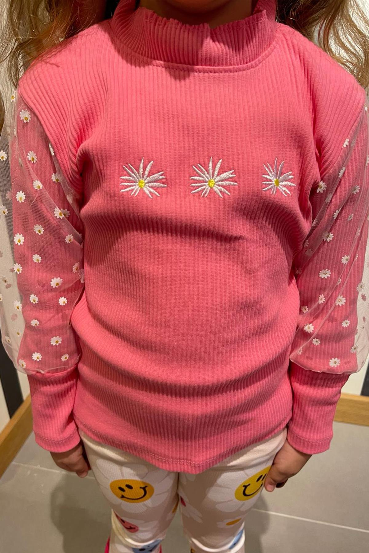 Kids Kolu Tül Papatya Detaylı Bluz (7325)