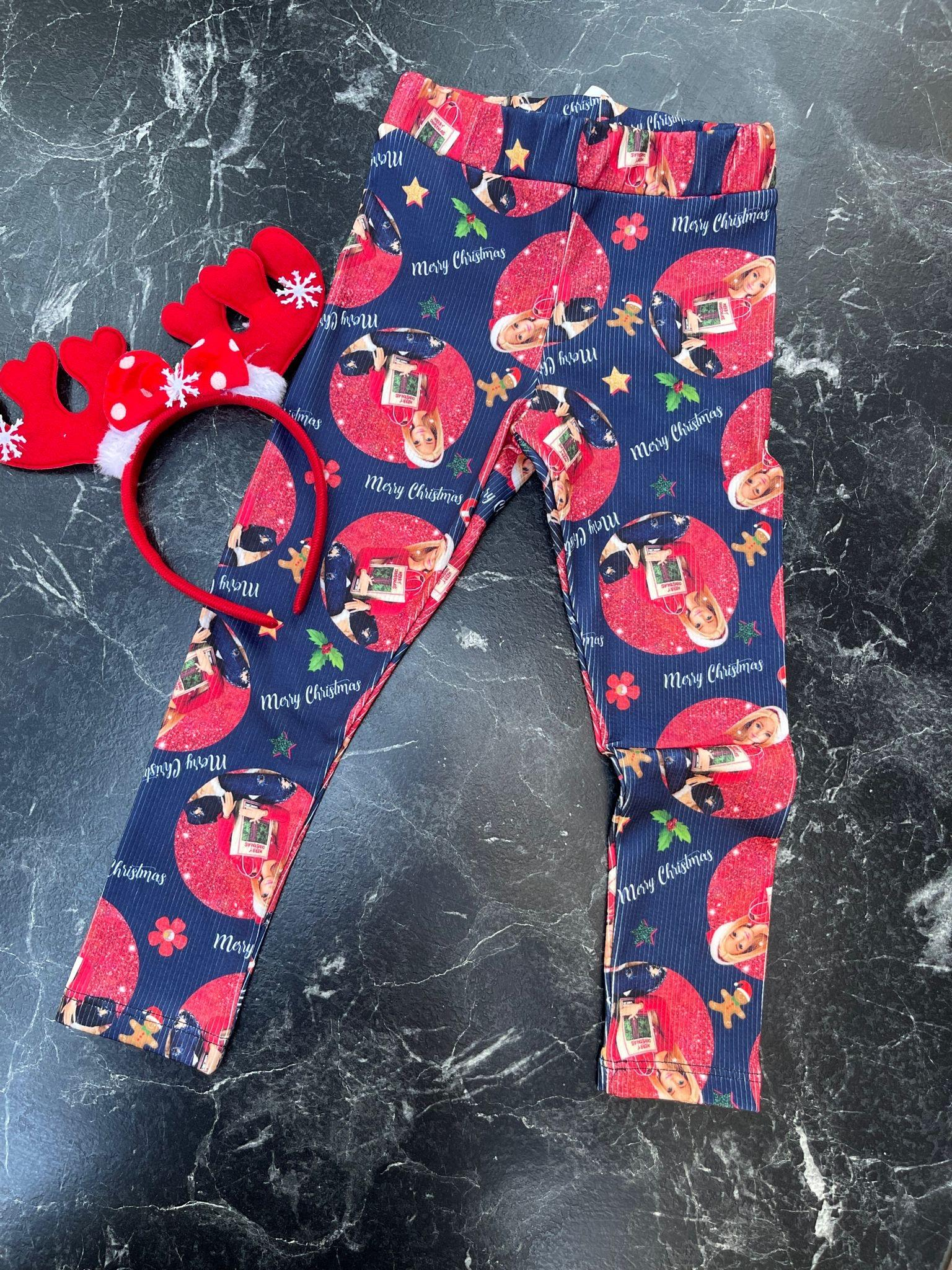 Kids Lacivert Barbie Baskılı İçi Şardonlu Tayt (6806)