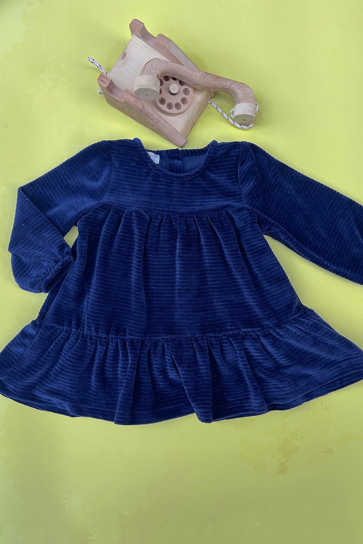 Kids Lacivert Kadife Elbise
