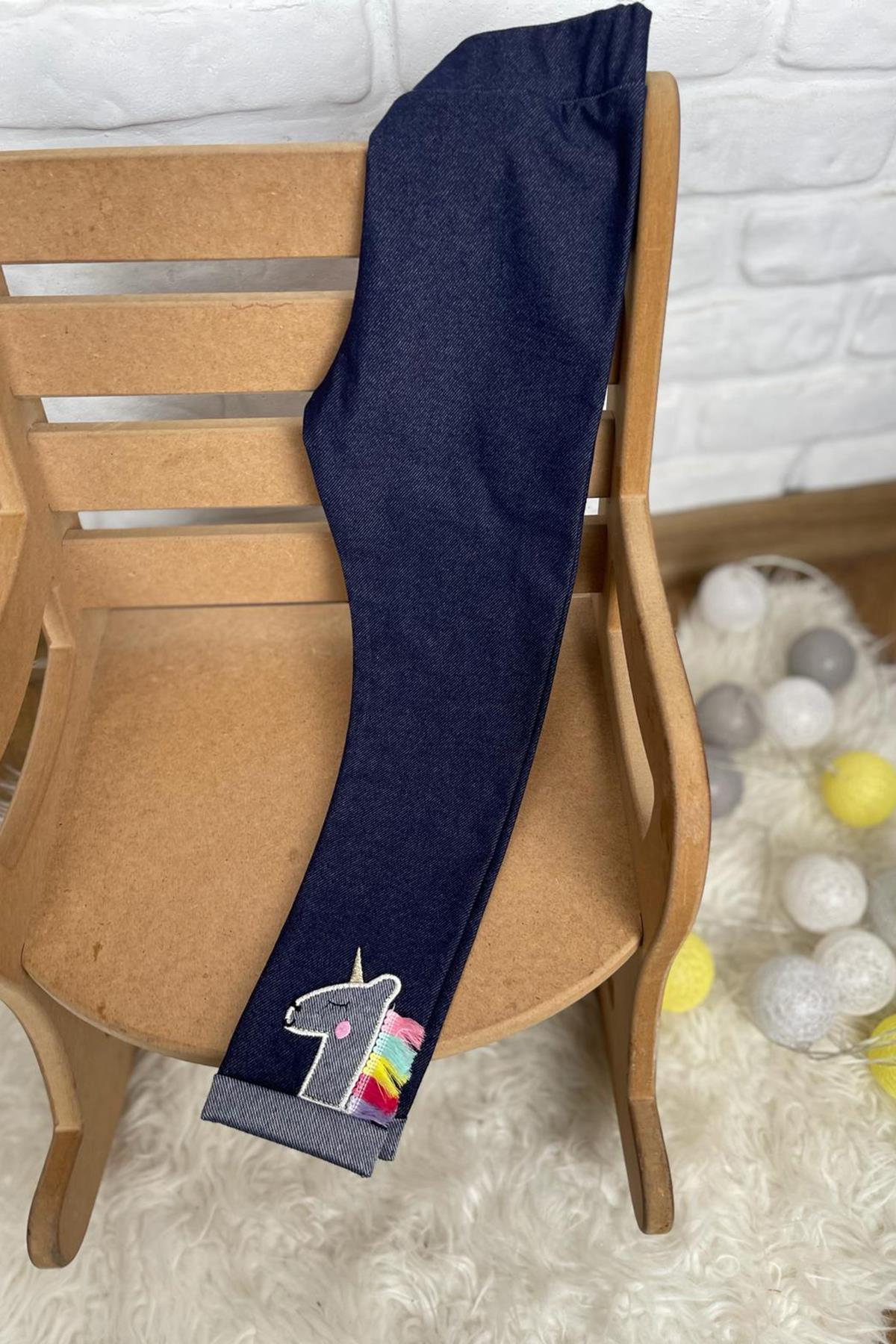 Kids Lacivert Paça Unicorn Detaylı Tayt (7330)