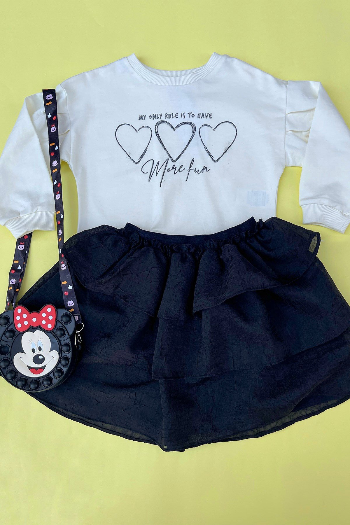 Kids Siyah Etekli Ekru Sweat Takım (5671)