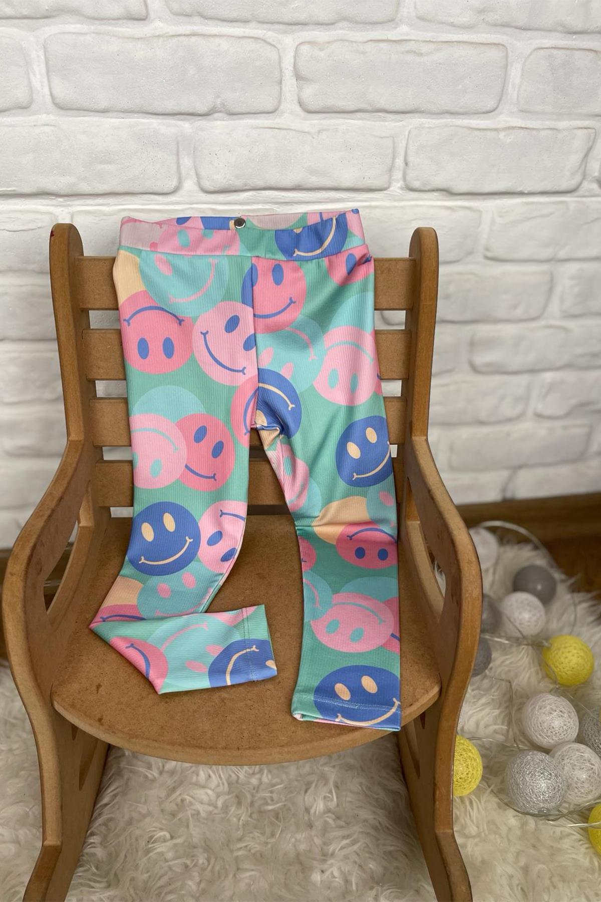 Kids Yeşil Smile  Baskılı Tayt