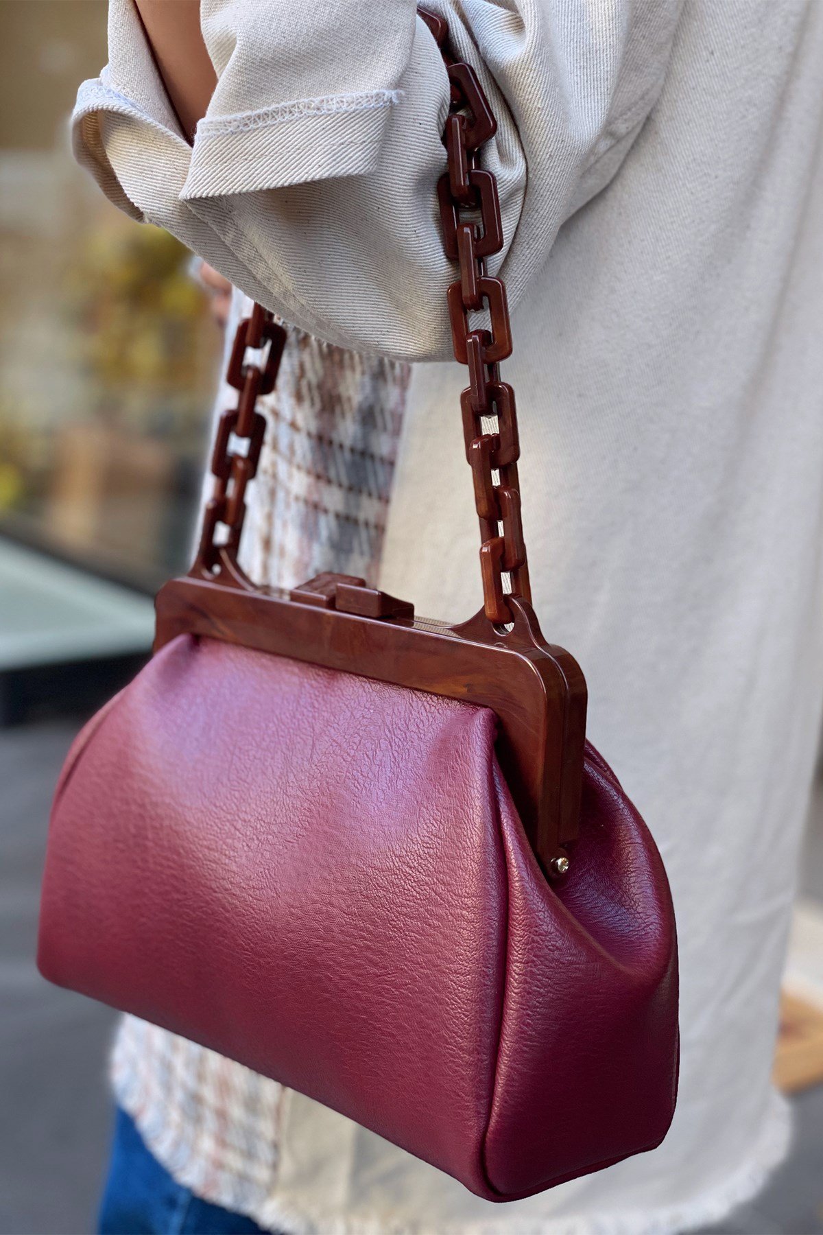 Lesa Bordo Kahve Zincirli Çanta