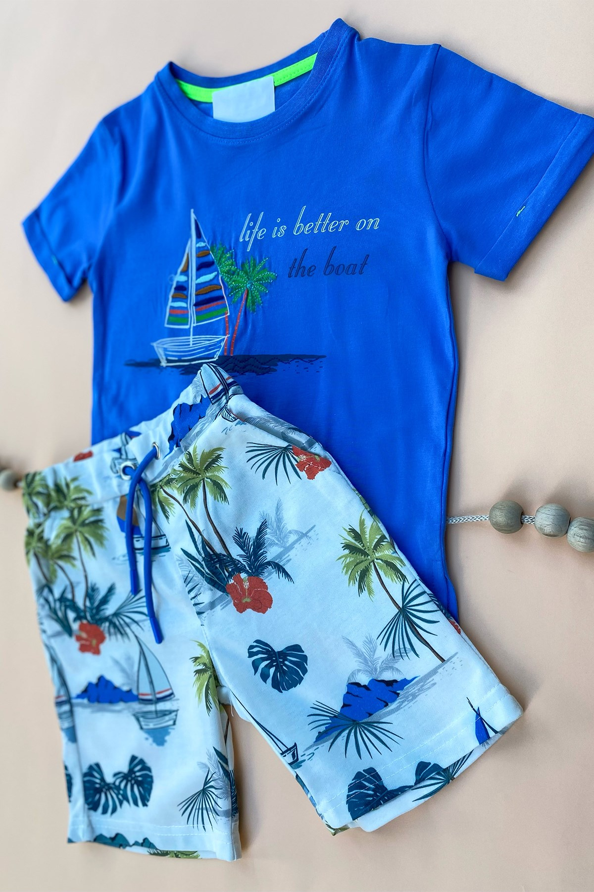 Mavi Desenli Şortlu Takım