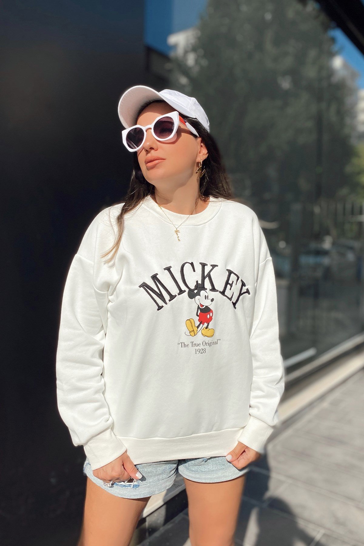 Mickey Mouse Baskılı Beyaz Sweatshirt