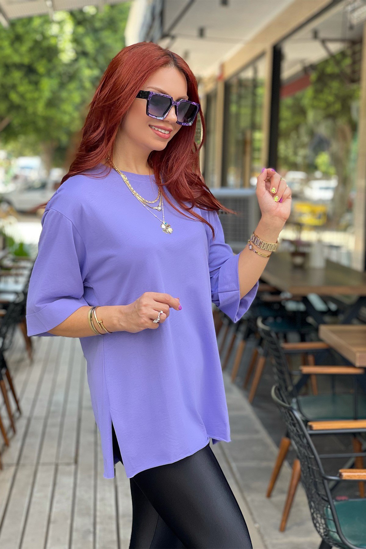 Mor Basic Uzun Boyfriend Tshirt
