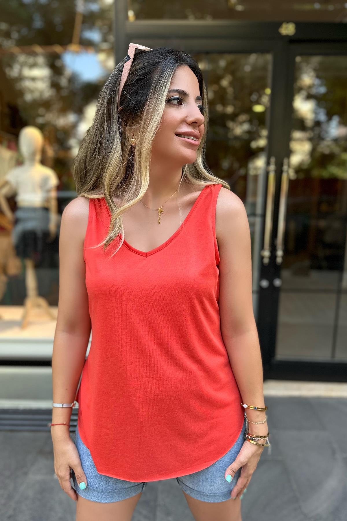 Narçiçeği Kolsuz Modal Kumaş Bluz