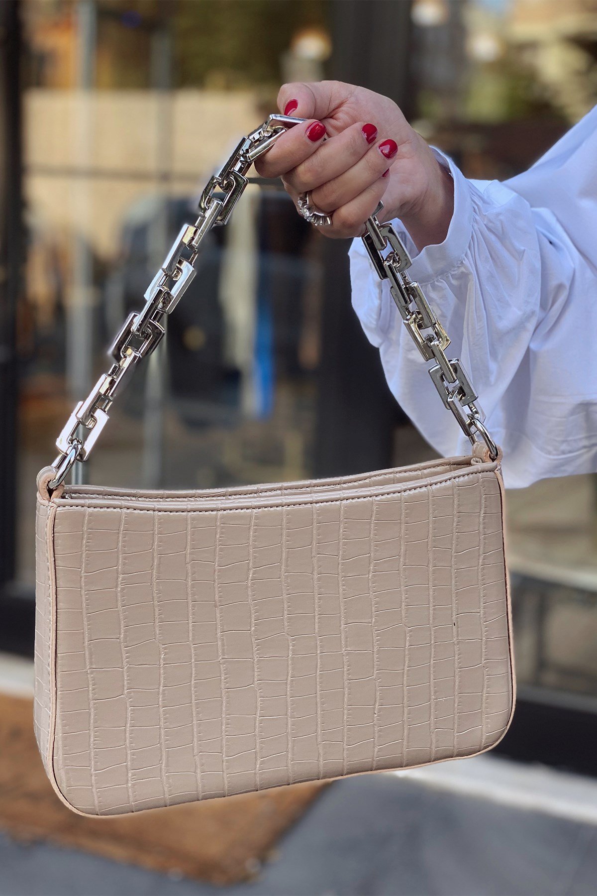 Oliven Dikdörtgen Kalın Zincirli Vizon Çanta