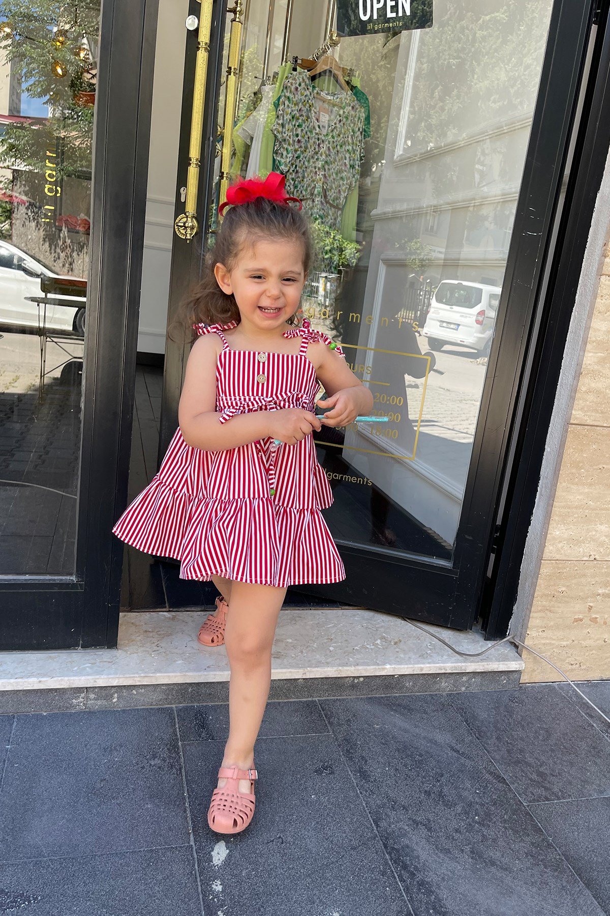 Önden Düğmeli Kırmızı Çizgili Elbise - 5316 uygun fiyat avantajıyla seni bekliyor. Kaya Sisters ile tarzını yenile!
