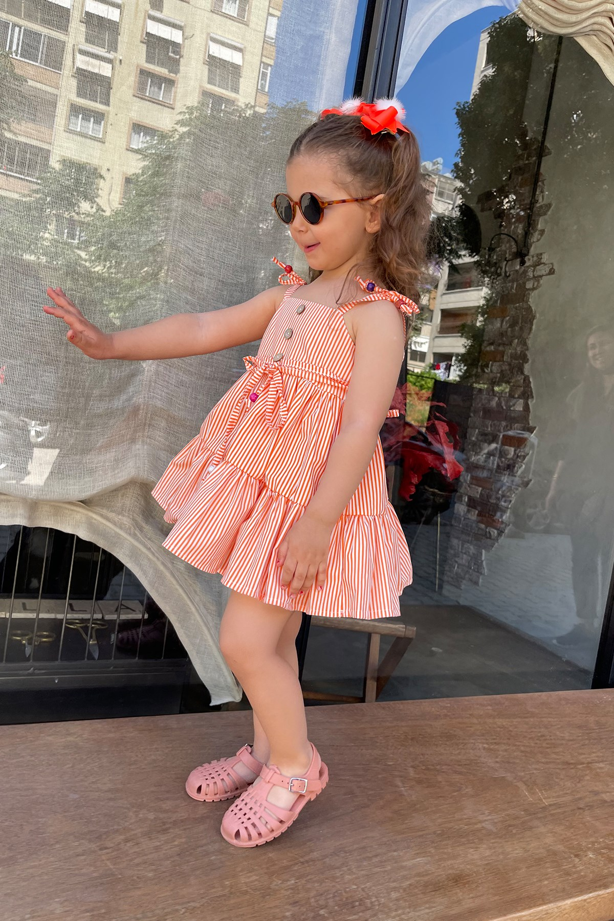 Önden Düğmeli Turuncu Çizgili Elbise - 5316 uygun fiyat avantajıyla seni bekliyor. Kaya Sisters ile tarzını yenile!