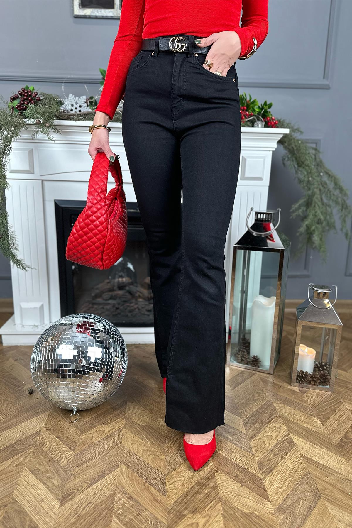 Paçası Yırtmaçlı Koyu Siyah Likralı Pantolon