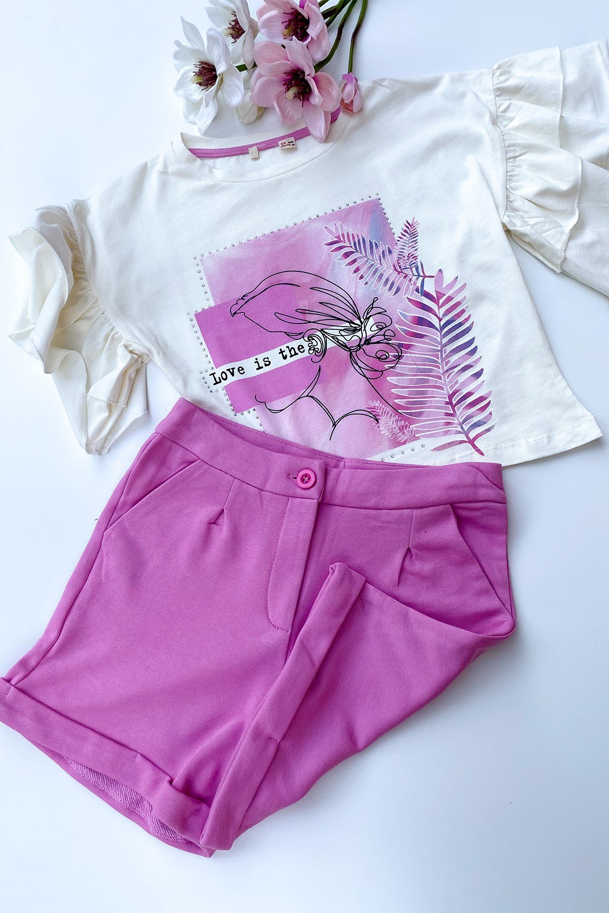 Pembe Baskılı Taşlı Şort Takım - 5246 uygun fiyat avantajıyla seni bekliyor. Kaya Sisters ile tarzını yenile!