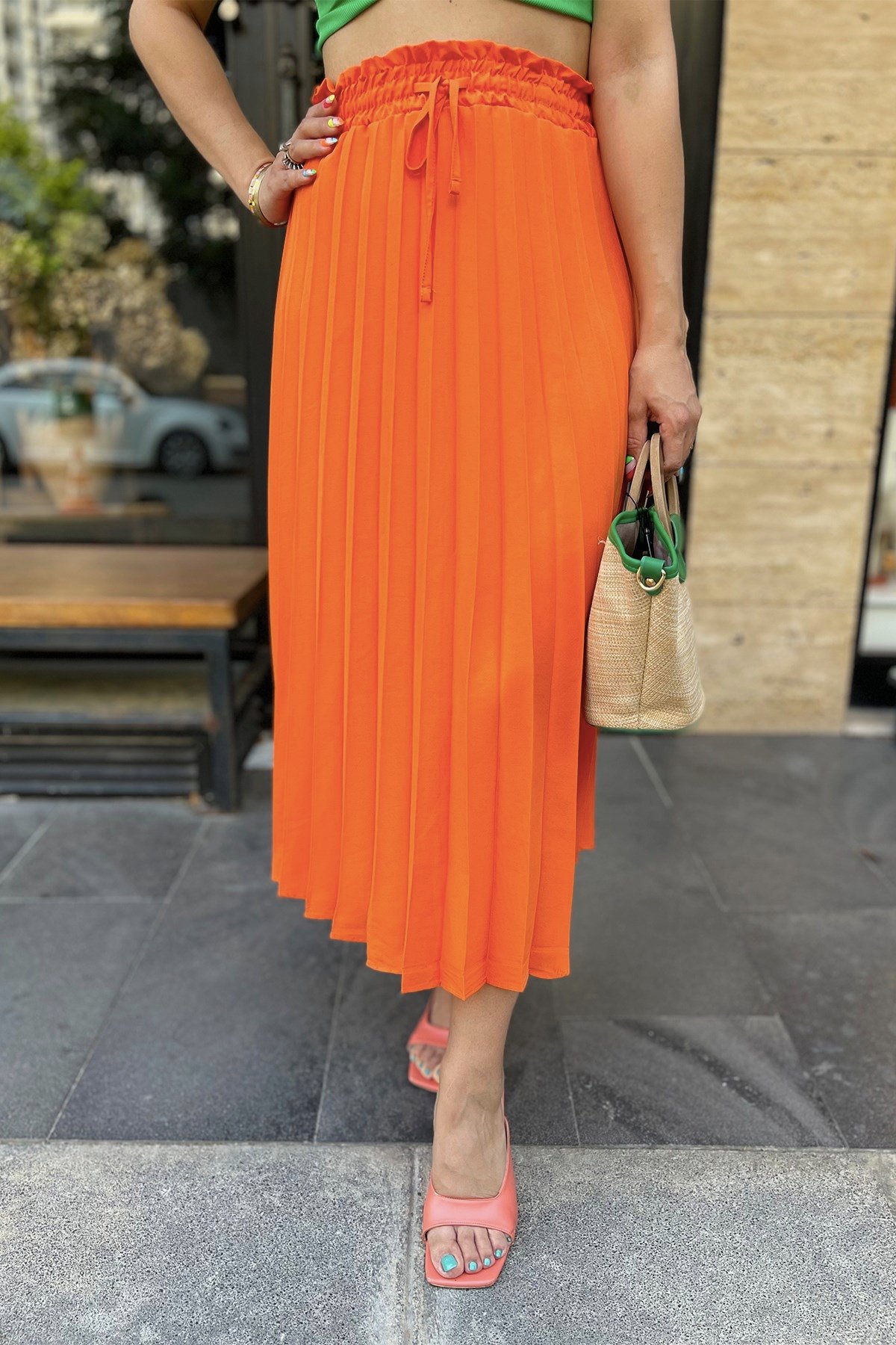 Pileli Turuncu Etek