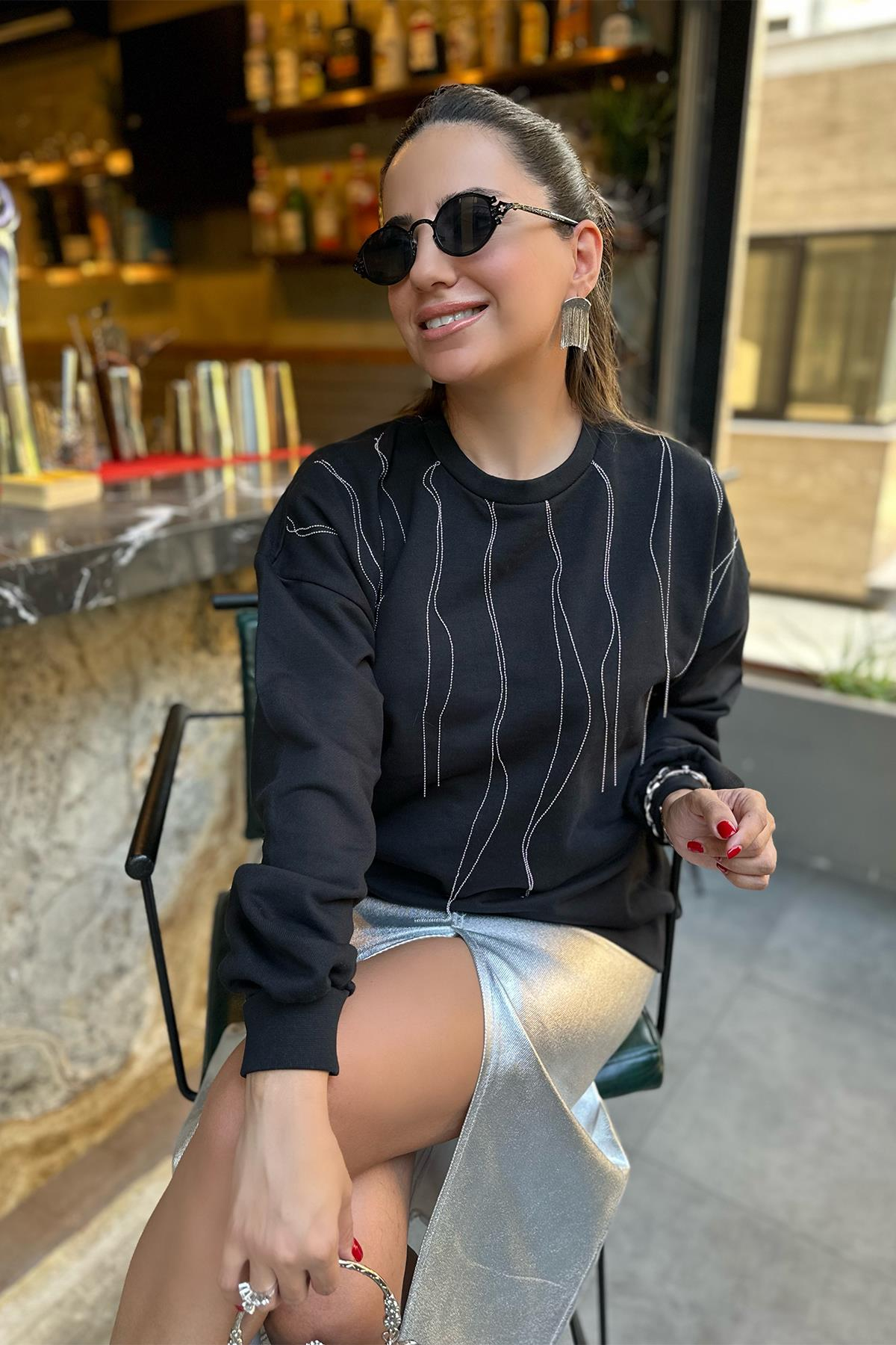 Siyah Önü Zincirli Tasarım Sweatshirt