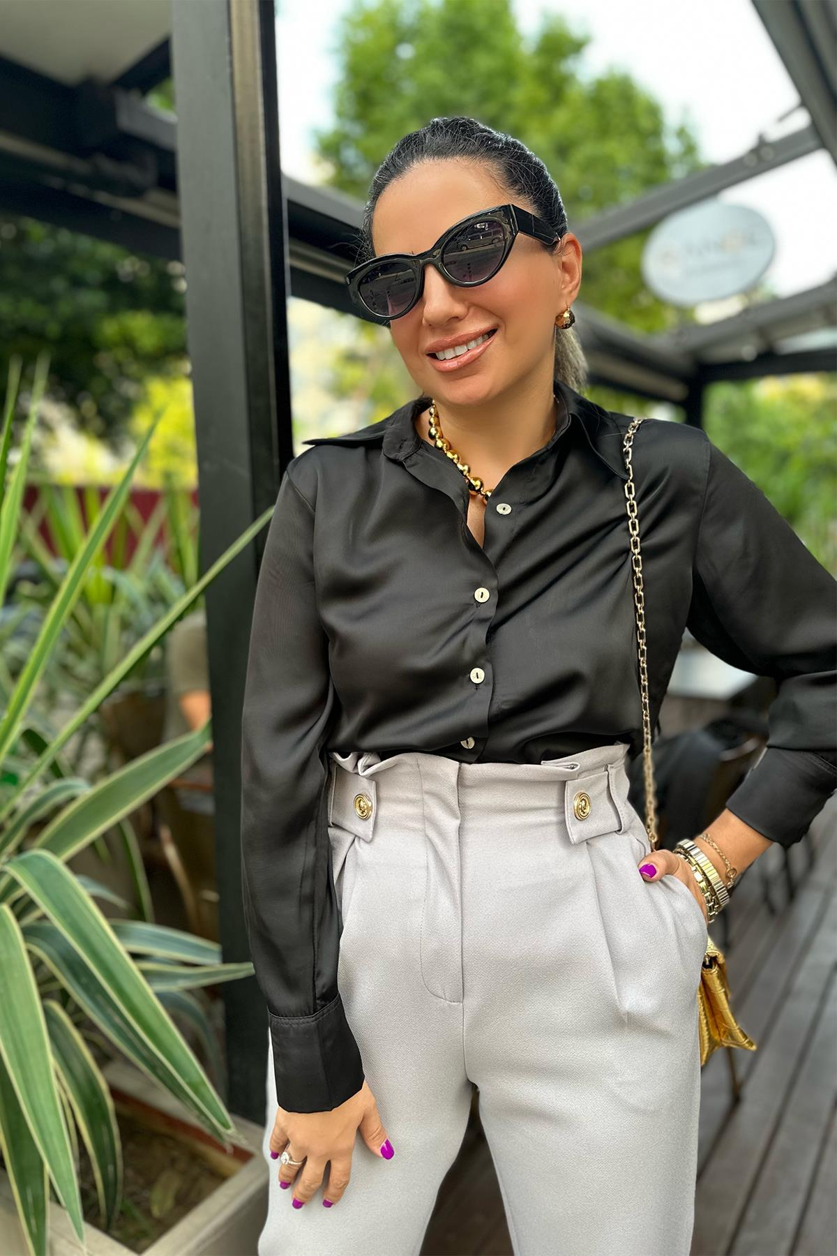 Siyah Saten Gömlek