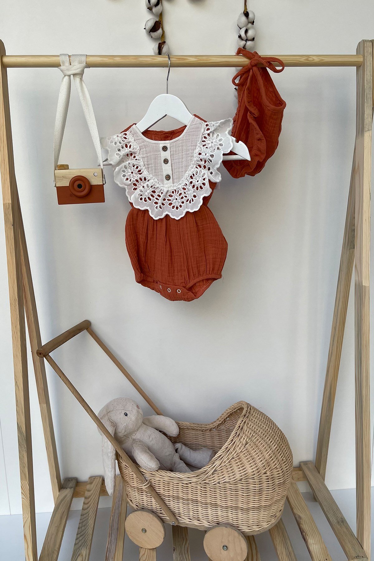 Yakası Güpür Kiremit Romper - 5086 uygun fiyat avantajıyla seni bekliyor. Kaya Sisters ile tarzını yenile!