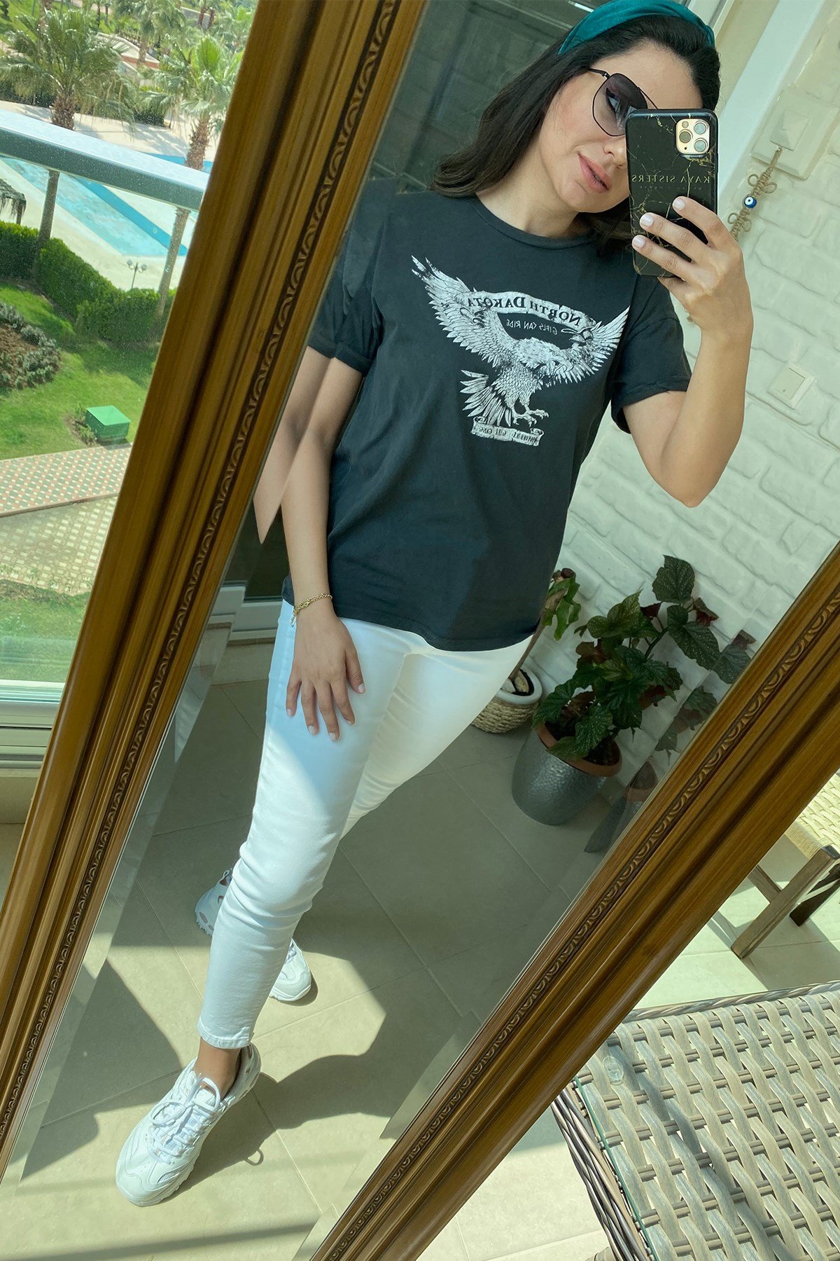 Yıkama Detaylı Kartal Tshirt - 3307 uygun fiyat avantajıyla seni bekliyor. Kaya Sisters ile tarzını yenile!